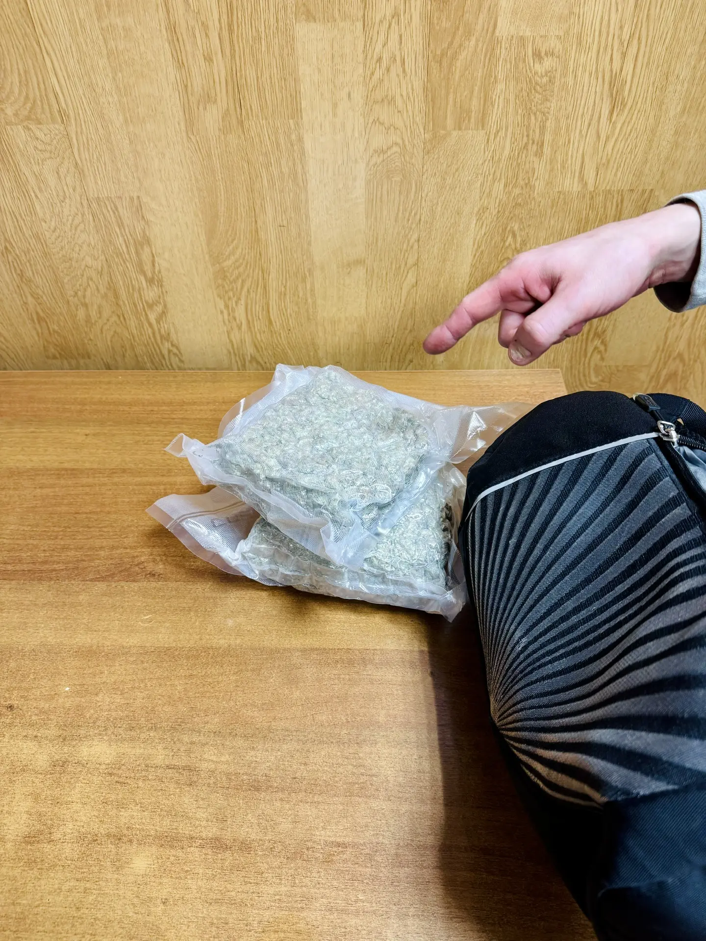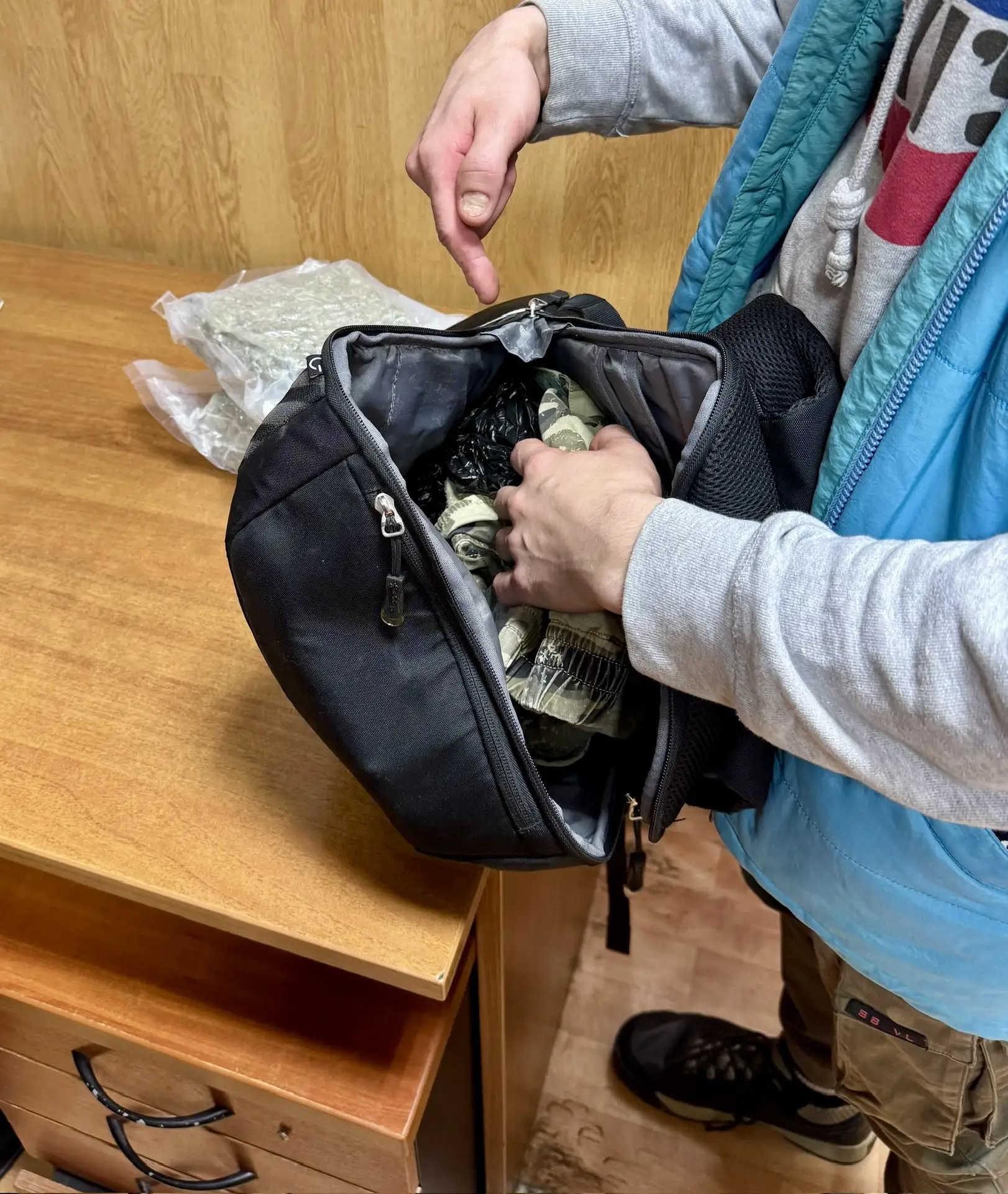 В дежурной части ЛОП на железнодорожной станции Серпухов, в ходе проведения личного досмотра, в присутствии понятых, у доставленного были обнаружены и изъяты два вакуумных пакета с веществом серо-зеленого цвета.