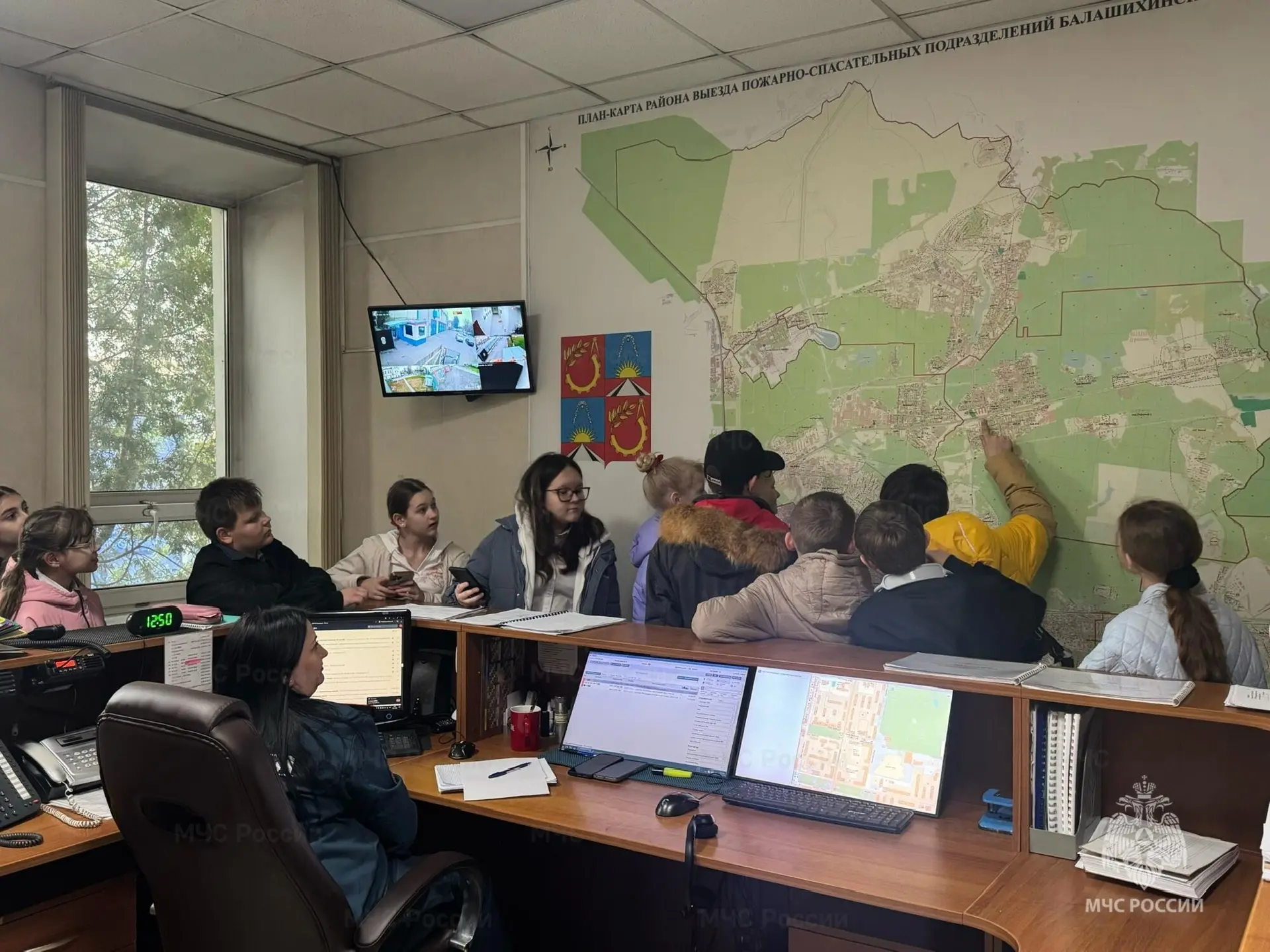 Ребятам удалось побывать в диспетчерской, куда поступают тревожные звонки на номер «112» и отсюда координируется работа выездных расчетов. Школьники узнали, как диспетчер принимает вызов и какие действия предпринимаются в первые секунды после сообщения о пожаре.