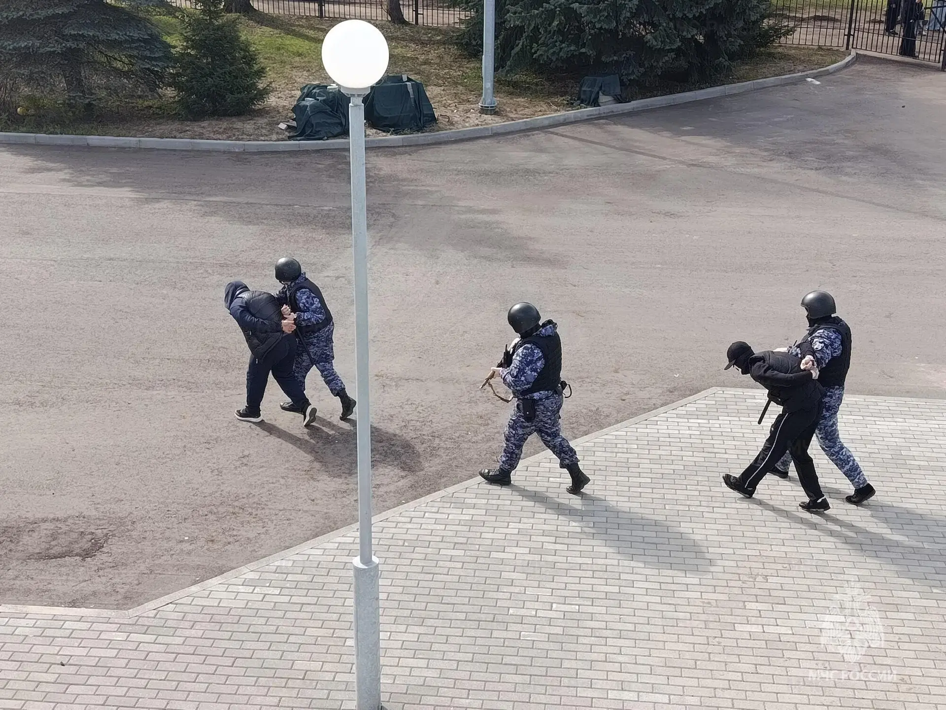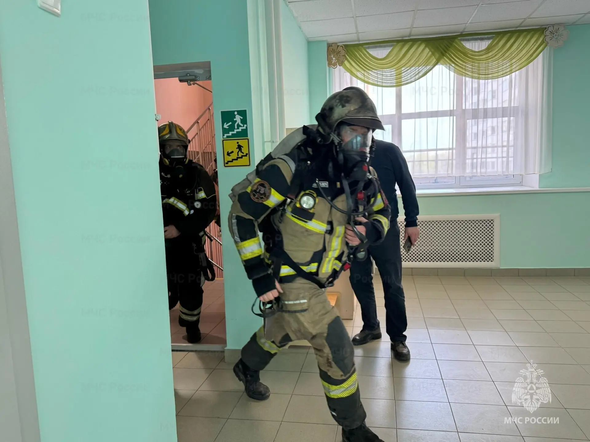 Глава МЧС России Александр Куренков и министр просвещения Сергей Кравцов дали старт учениям. Совещание прошло в центральном аппарате МЧС с участием представителей МВД, Росгвардии и Рособрнадзора.