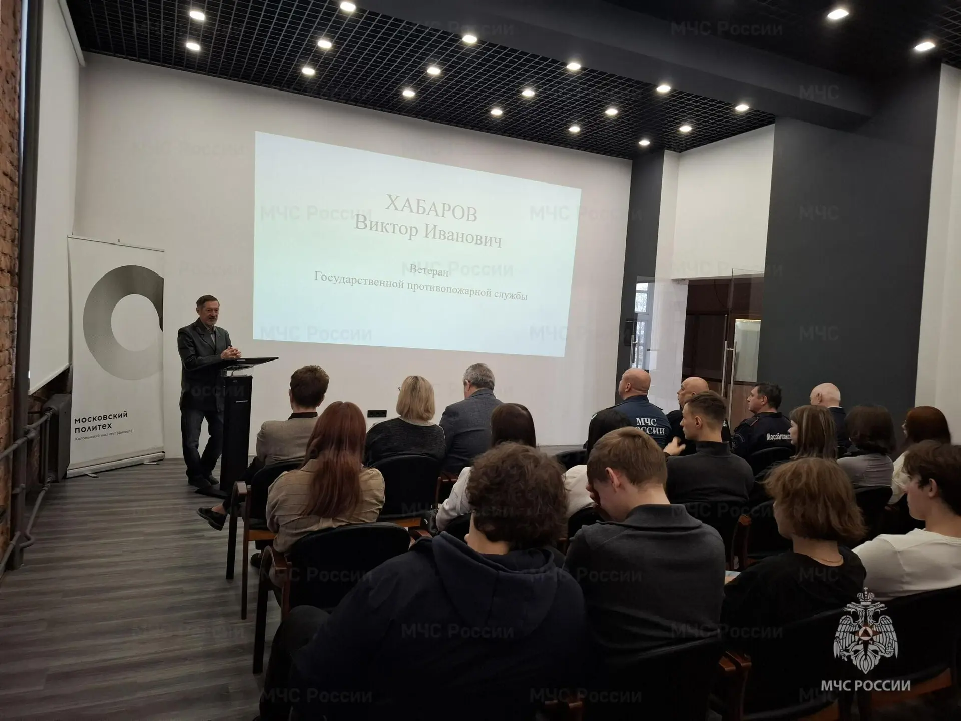 Сотрудники Коломенского пожарно-спасательного гарнизона провели урок мужества для студентов Коломенского института Московского политехнического университета.