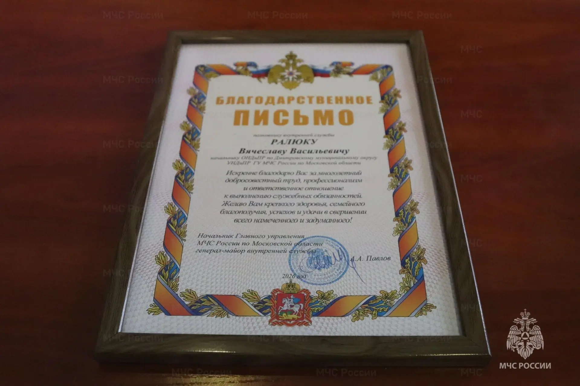 Начальник отдела надзорной деятельности и профилактической работы по Дмитровскому муниципальному округу Главного управления МЧС России по Московской области полковник внутренней службы Вячеслав Васильевич Ралюк завершил службу в чрезвычайном ведомстве Подмосковья.