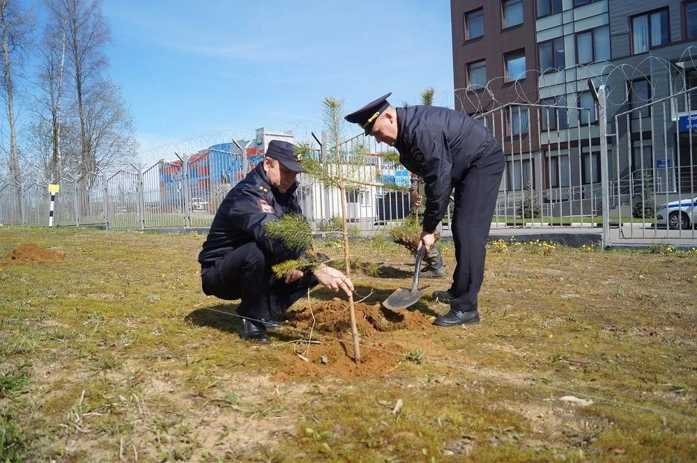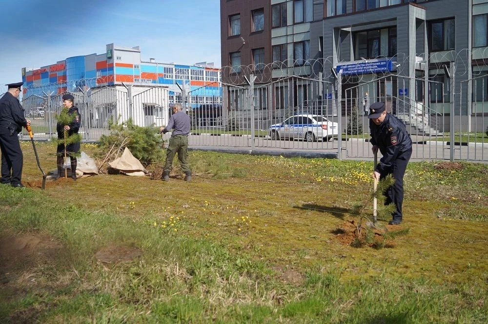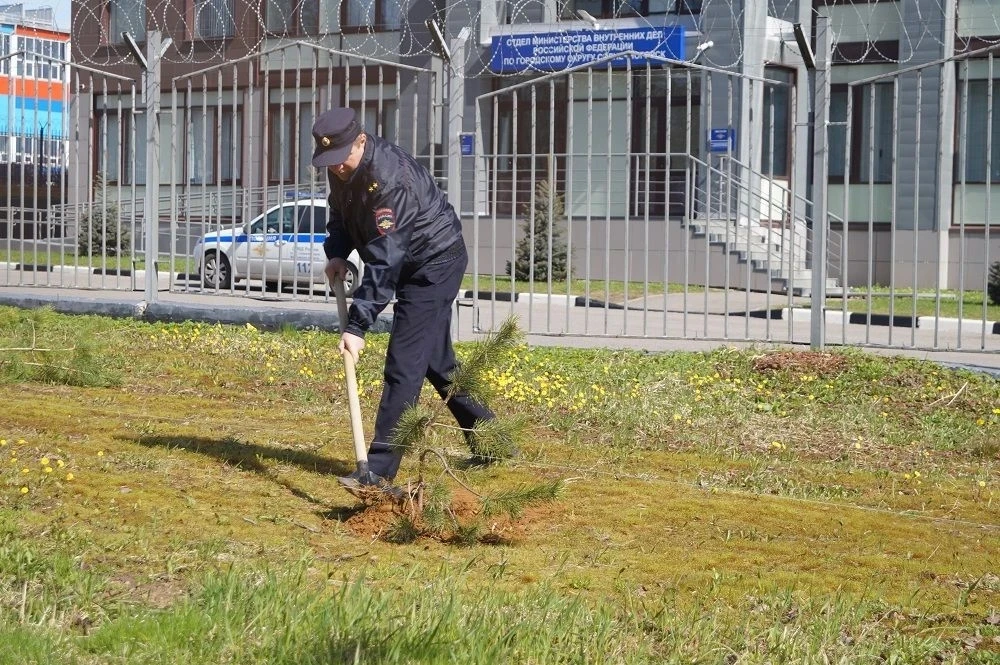 В Солнечногорске полицейские высадили деревья на прилегающей к административному зданию ОМВД территории.