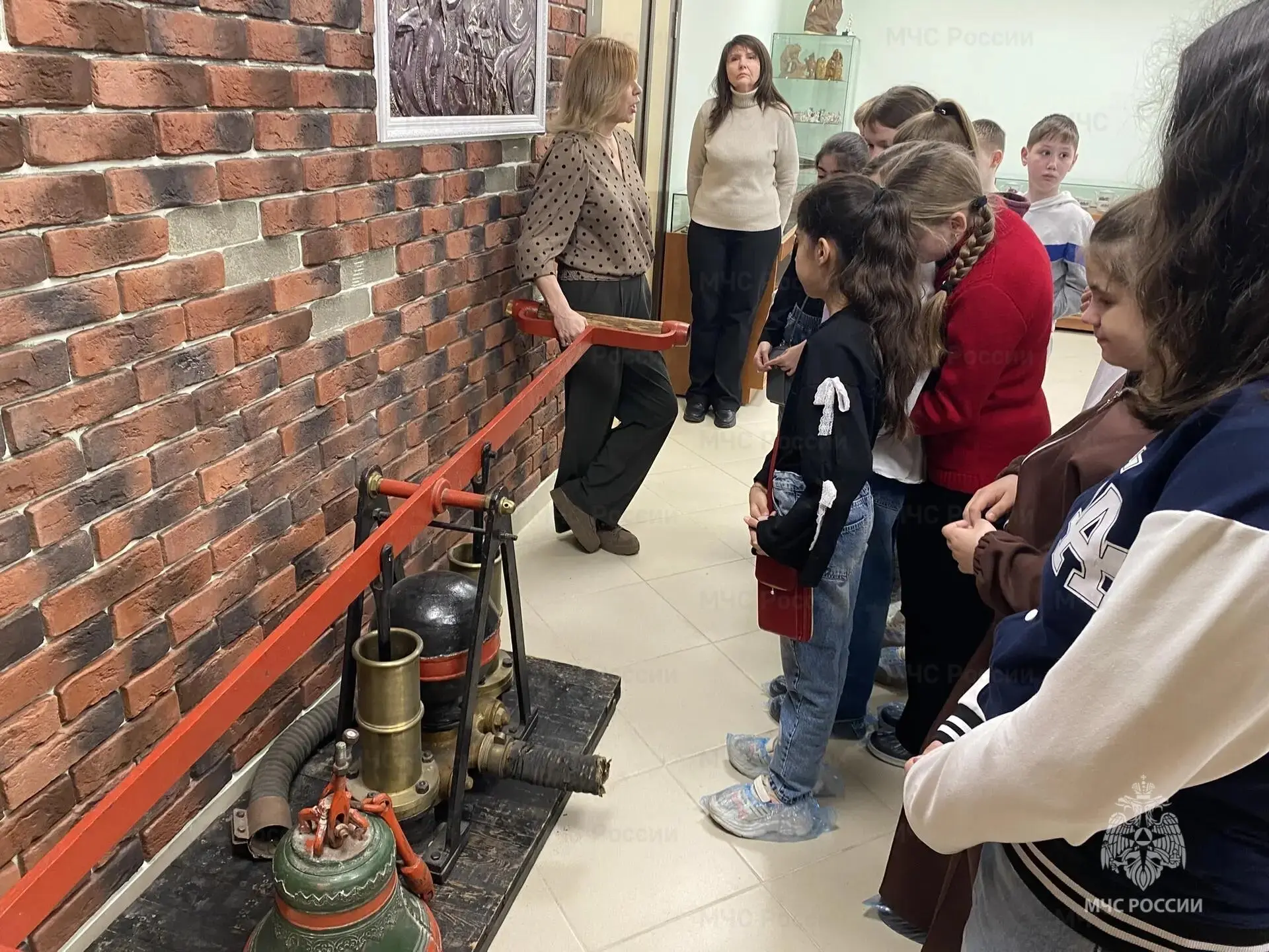 В историческом зале ребята узнали о зарождении первых пожарных дружин на подмосковной земле. Школьники с большим интересом рассматривали старинные книги о первых способах борьбы с огнем и уникальные экспонаты, рассказывающие об эволюции пожарного дела.