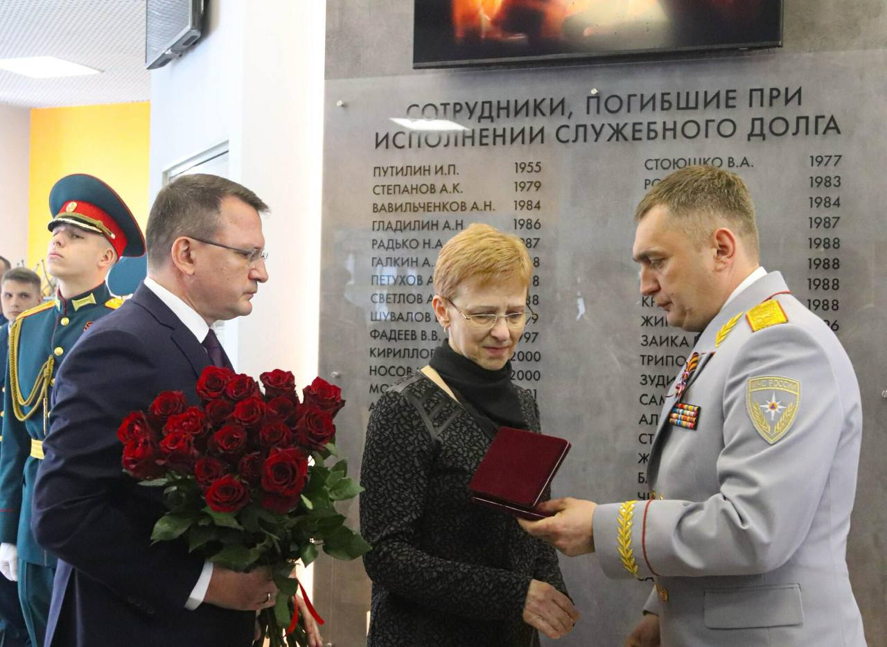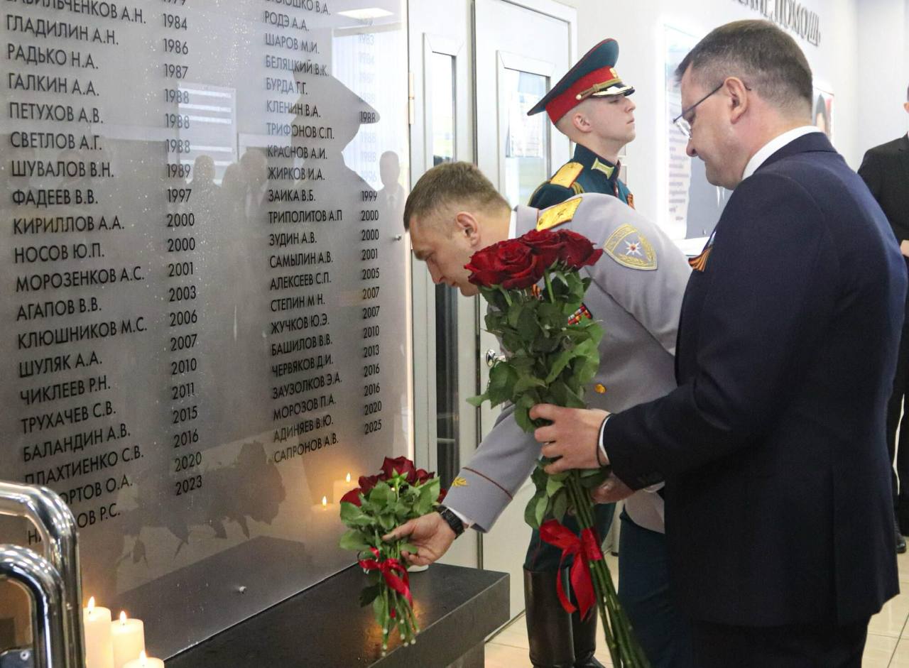 «Сорок четыре имени, которые высечены на мемориальной доске - это летопись беззаветного мужества, пример несгибаемой преданности Присяге и профессиональному долгу», - отметил Алексей Павлов.