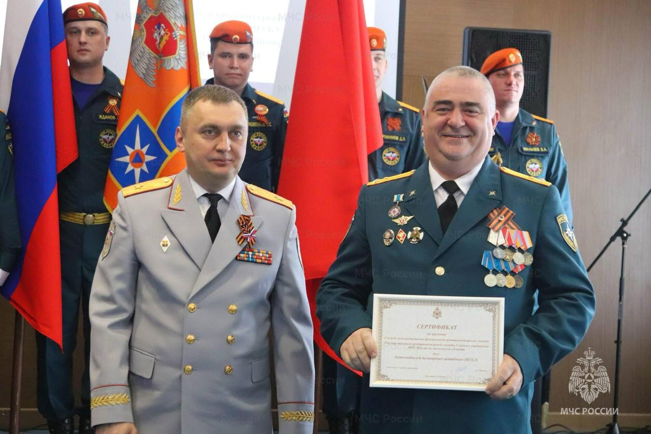 В честь профессионального праздника ветеранам пожарной охраны и отличившимся сотрудникам Главного управления и Московской областной противопожарно-спасательной службы были вручены заслуженные награды, личному составу присвоены специальные звания. Сертификат на два штабных пожарных автомобиля руководитель чрезвычайного ведомства вручил начальнику службы пожаротушения Антону Марчуку. Начальнику 6 пожарно-спасательного отряда Юрию Игнатьеву был вручен сертификат на пожарную автоцистерну.