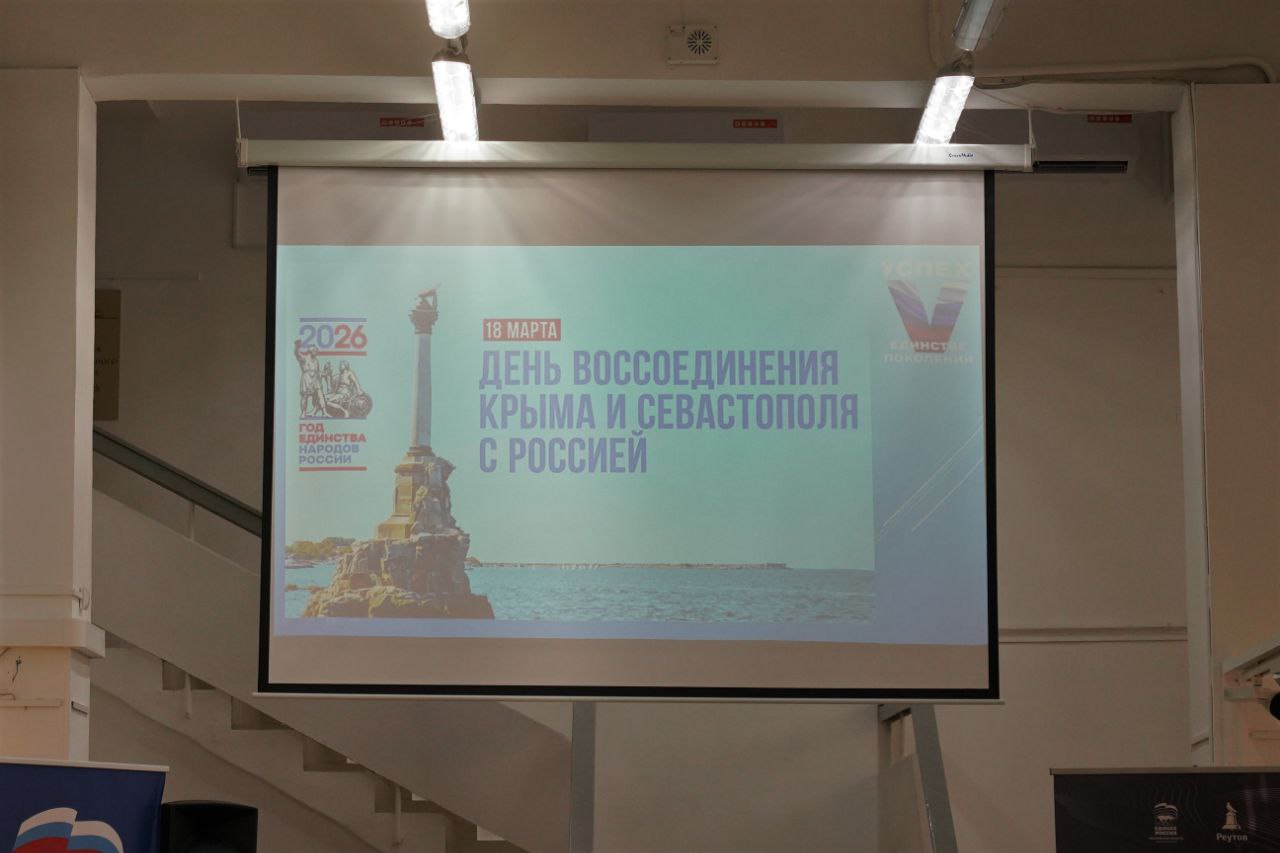 В среду, 18 марта, в Музейно-выставочном центре Реутова в рамках серии городских патриотических мероприятий состоялась встреча, посвящённая 12-летию со Дня воссоединения Крыма с РФ. Жителям города рассказали о памятной дате и её значении для современной отечественной истории.