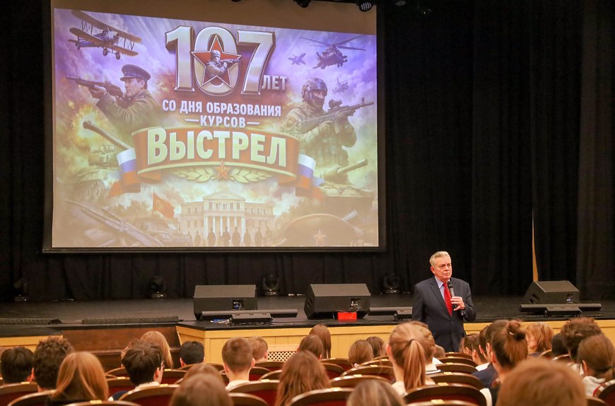 В ДК «Выстрел» для учащихся гимназии № 6 провели урок воинской славы, посвящённый 107летию легендарных Высших офицерских курсов.