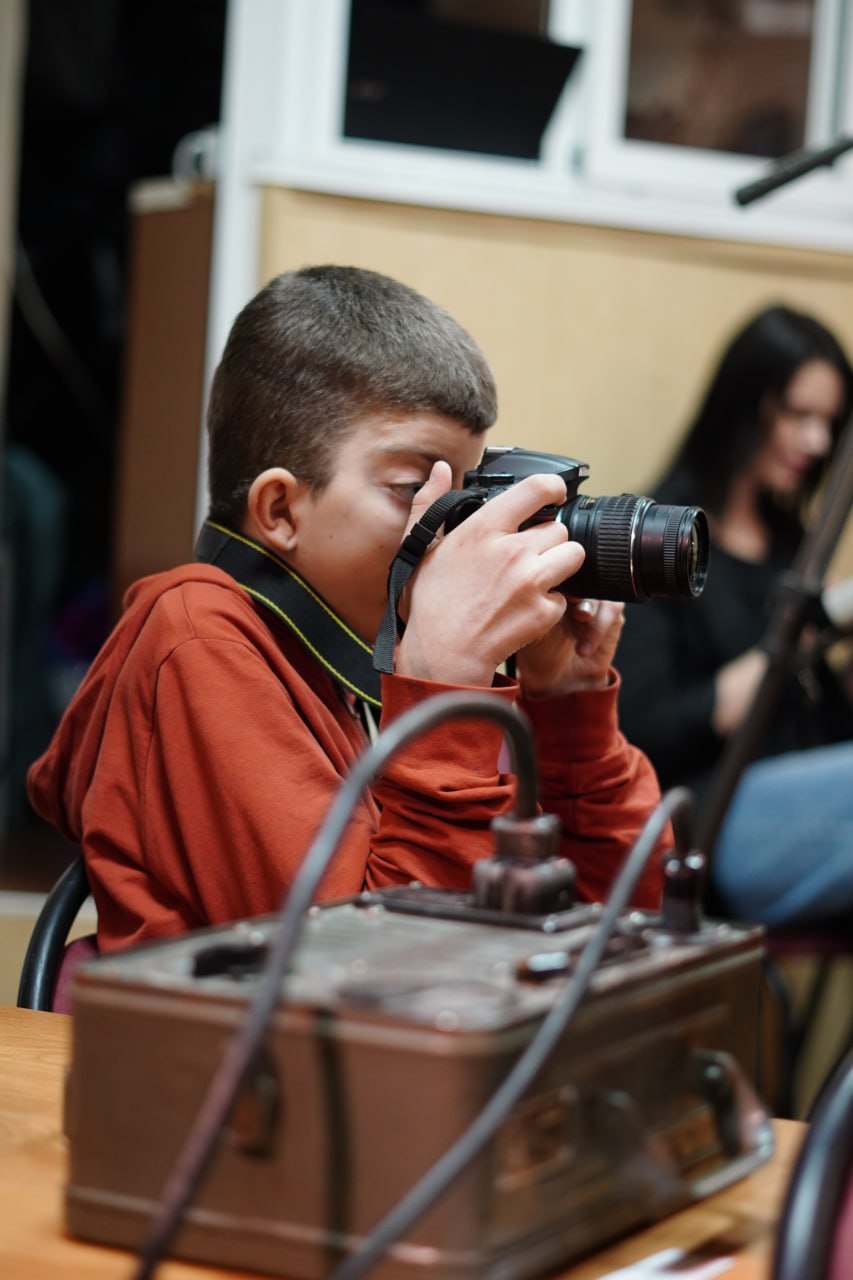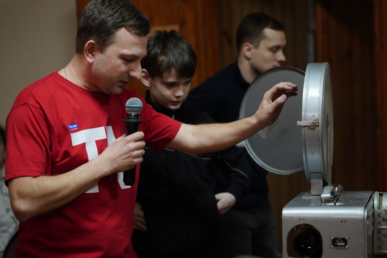 На первом уроке «От плёнки до 4К» ребята прикоснулись к магии кинематографа, разобравшись в устройстве раритетного пленочного проектора. Атмосферу дополнил выпускник телестудии «Окно» Данил Борохтянов, не просто рассказав о музыке прошлого, а вместе с гостями сотворил из подручных материалов проигрыватель для виниловых пластинок.