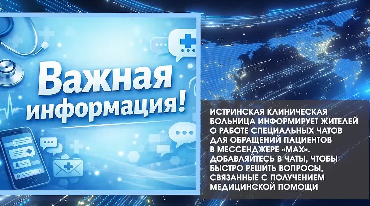 Истринская клиническая больница информирует жителей о работе специальных чатов для обращений пациентов в мессенджере «MAX». Добавляйтесь в чаты, чтобы быстро решить вопросы, связанные с получением медицинской помощи.