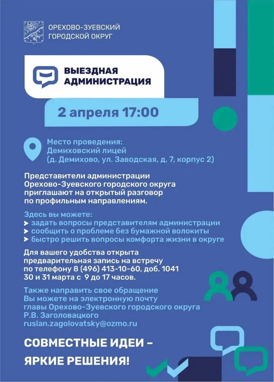 2 апреля в 17.00 выездная администрация проведёт приём в д. Демихово