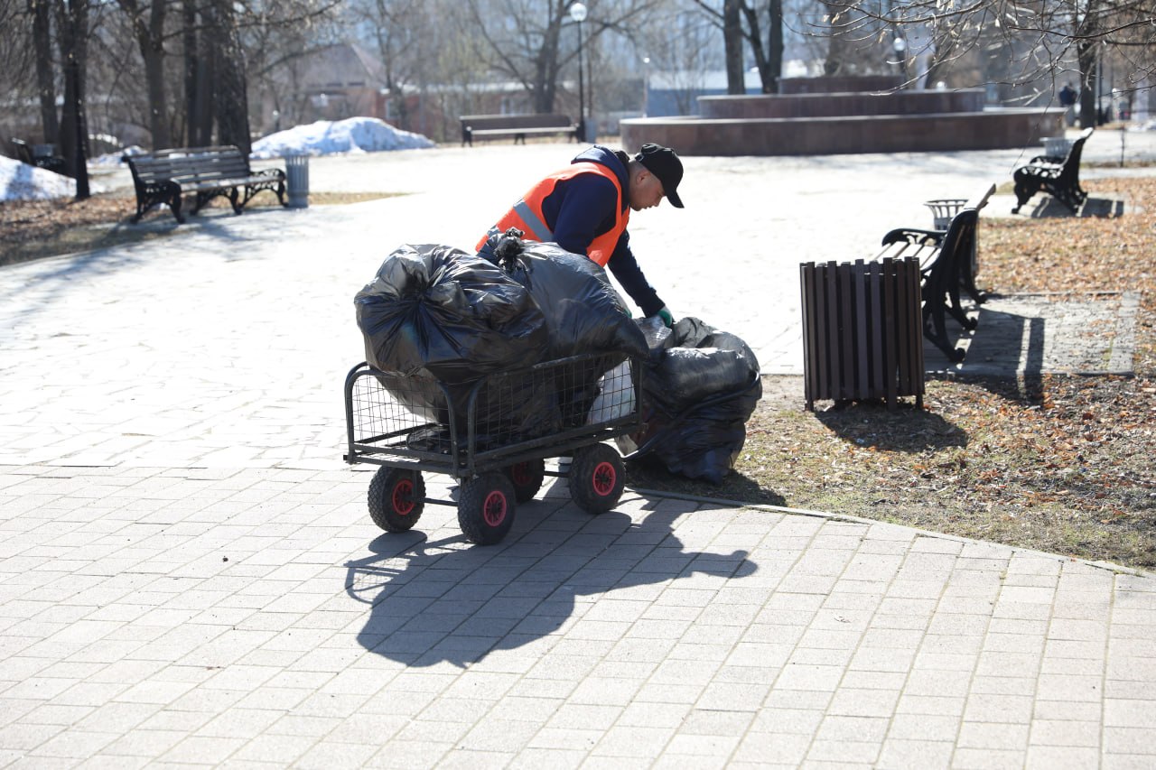 В Юсуповском сквере Долгопрудного наводят чистоту и порядок