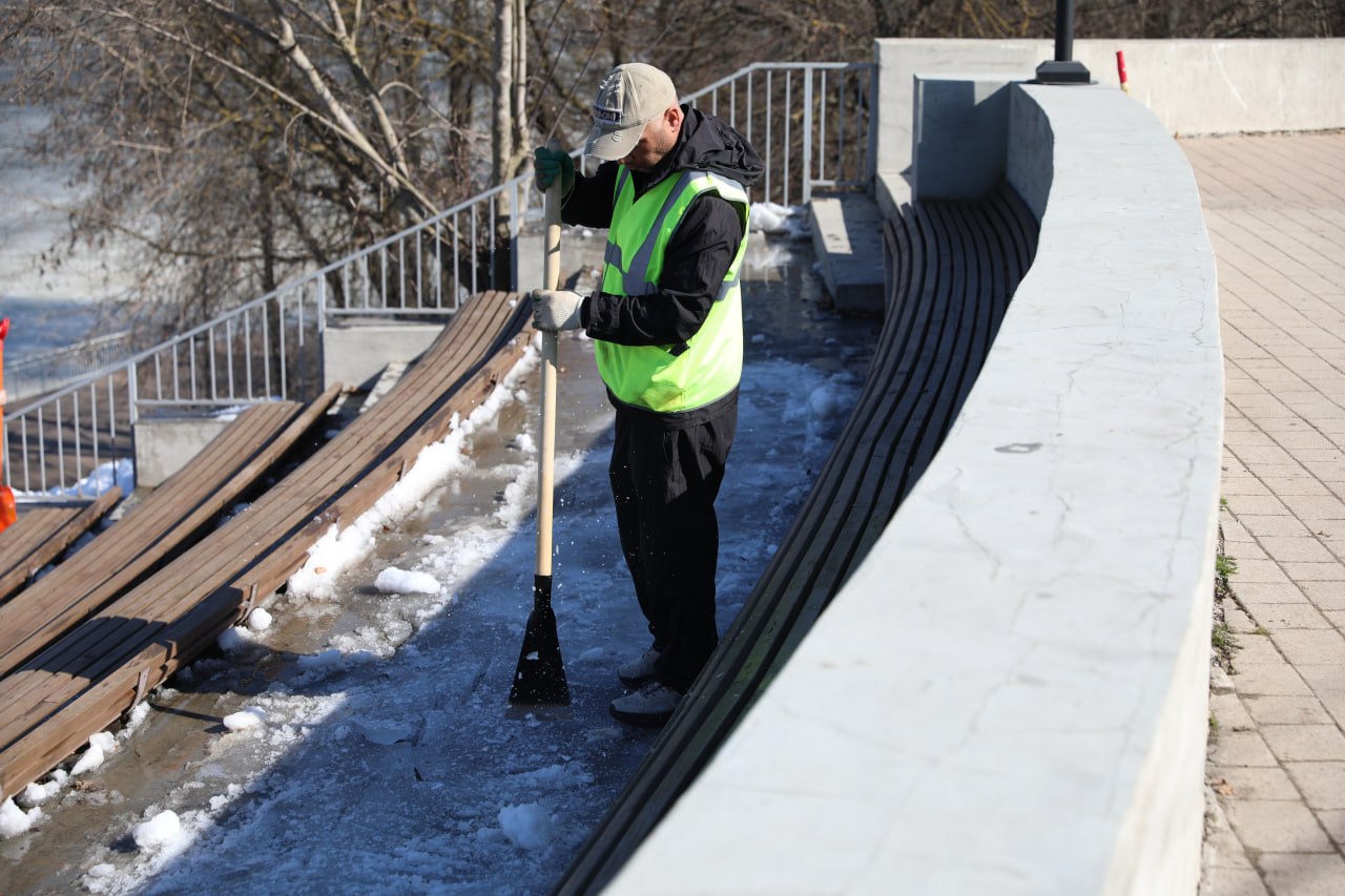 После зимы эта территория нуждается в уборке. 31 марта здесь высадился трудовой десант.