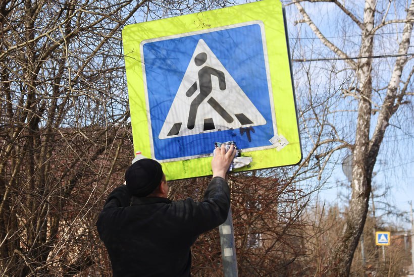 отмывают детские площадки, дорожные знаки и поручни.