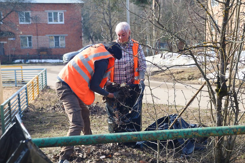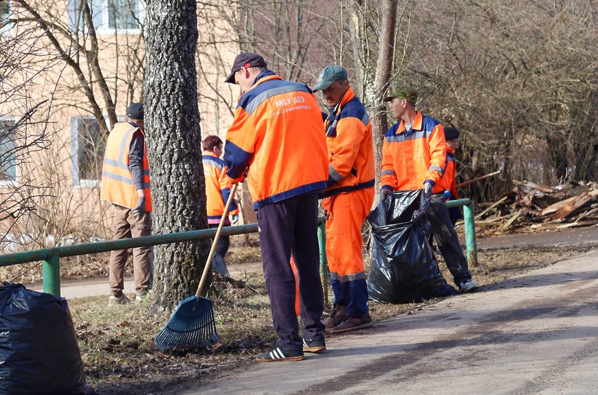Специалисты МБУ «ДЕЗ г. о. Солнечногорск» вместе с УК убирают территории после зимы. Уже привели в порядок Поварово и микрорайон Рекинцо.