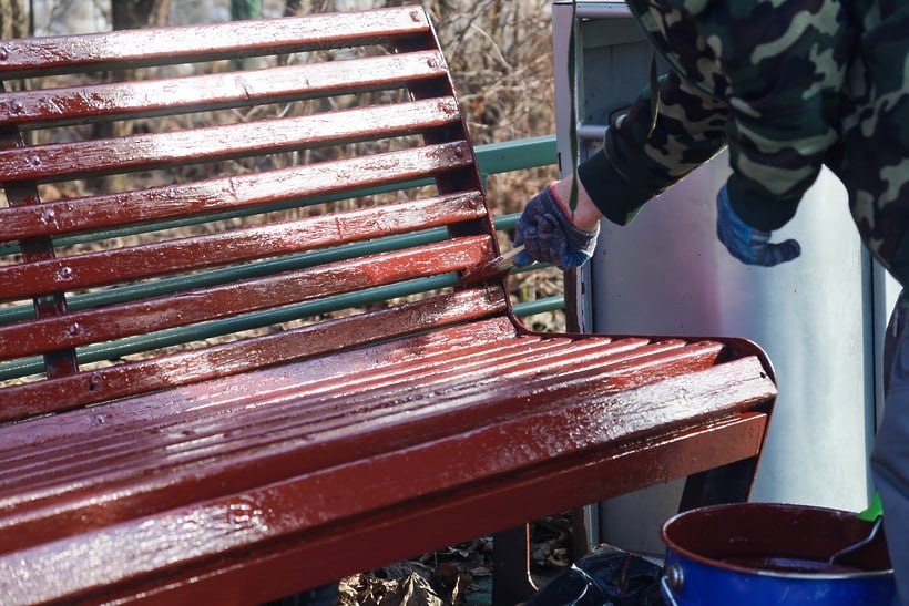 обновляют покрытие скамеек и малых архитектурных форм
