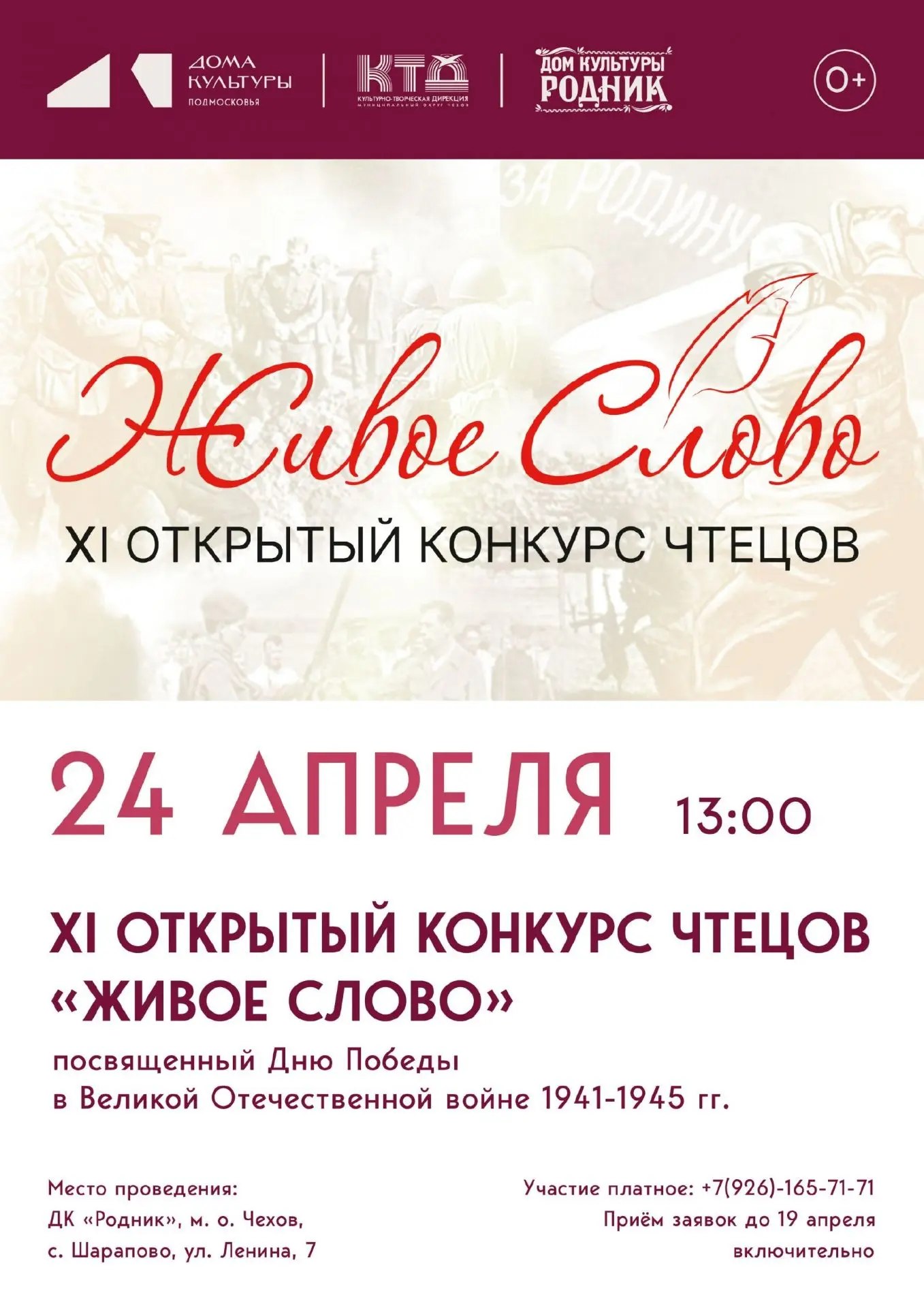 Приглашаем принять участие в XI Открытом конкурсе чтецов "Живое слово" в ДК "Родник" м.о. Чехов