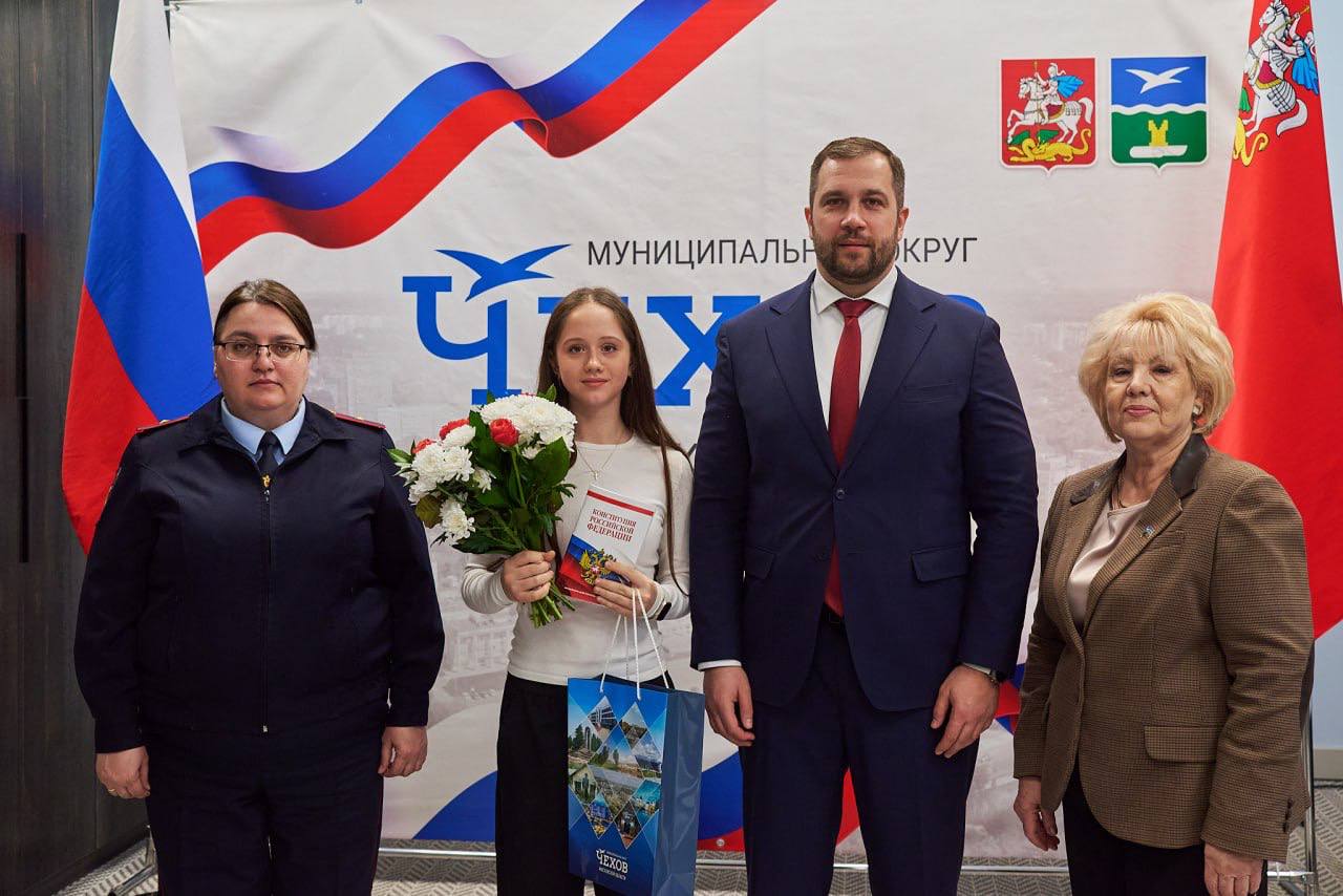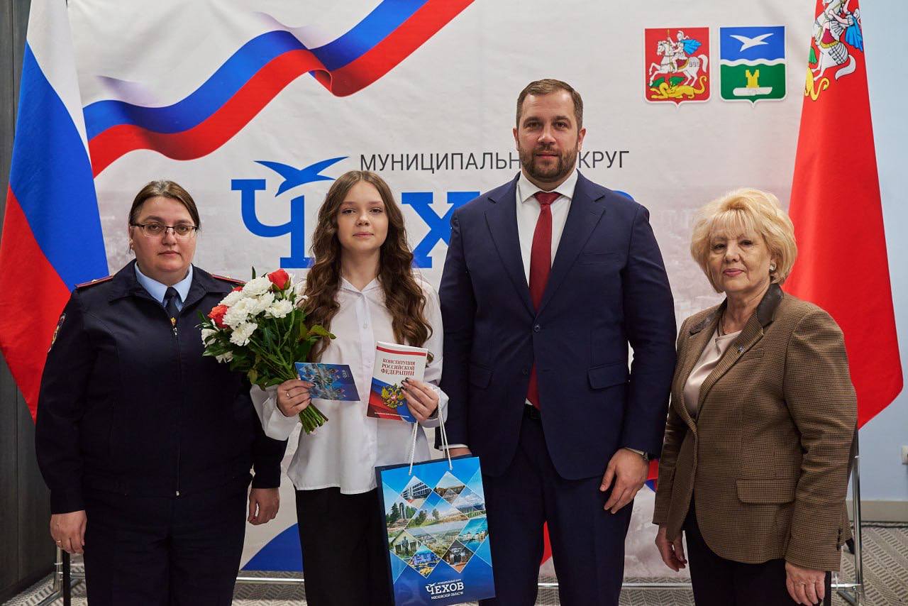 Вручение паспорта в торжественной обстановке юным гражданам нашей страны уже давно стало доброй и важной традицией. Вот и сегодня мы вместе с Председателем Совета депутатов муниципального округа Чехов Галиной Семеновной Козиной в торжественной атмосфере вручили первый и самый главный документ нашим мальчишкам и девчонкам