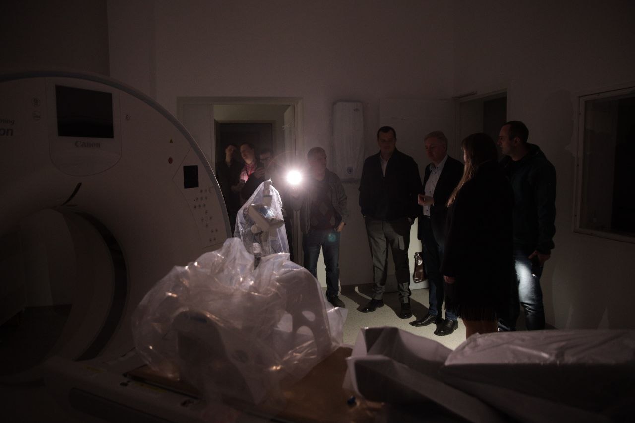 Сейчас на объекте трудятся больше ста специалистов. Завершаются работы на инженерных сетях, идут пусконаладочные процессы. Уже завезено более 80% мебели и оборудования. Установлены флюорограф, маммограф, компьютерный томограф и аппарат МРТ.