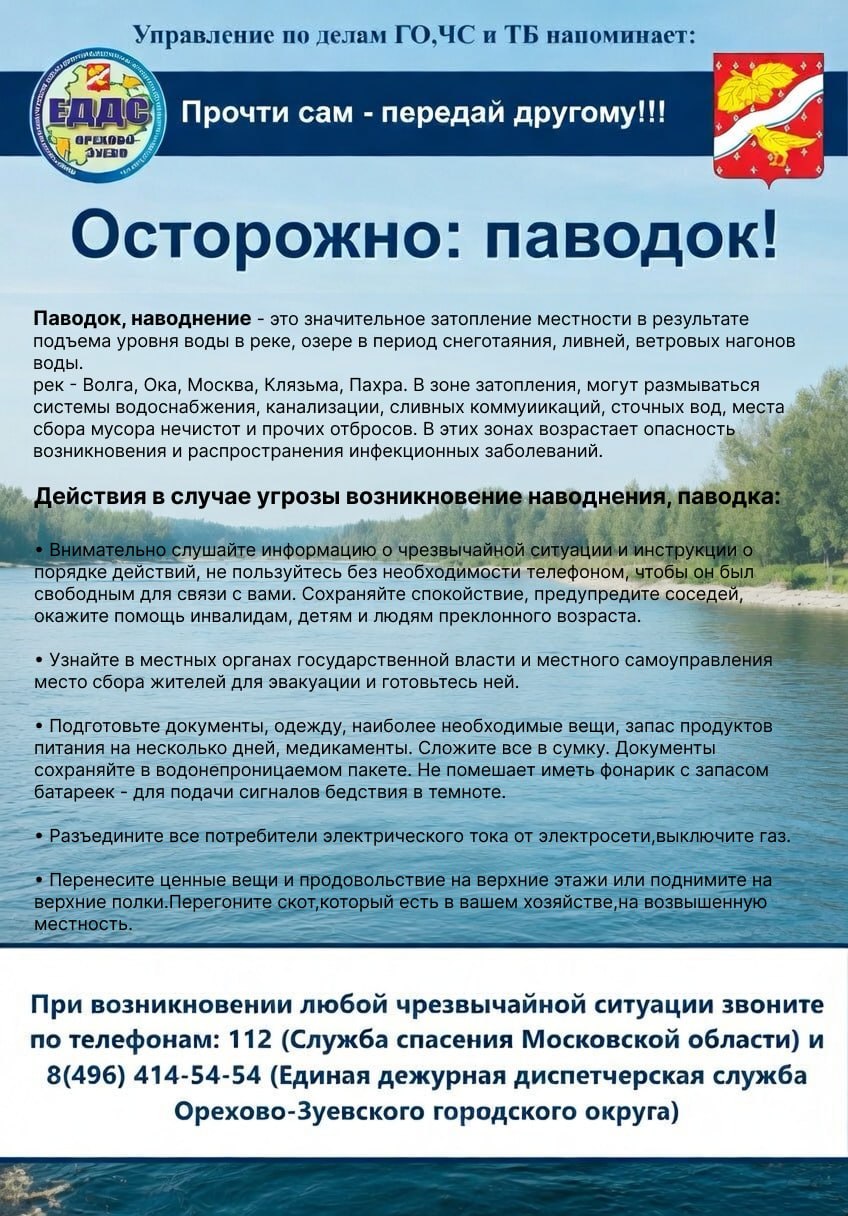Рекомендации по действиям в зоне подтоплений в памятке.