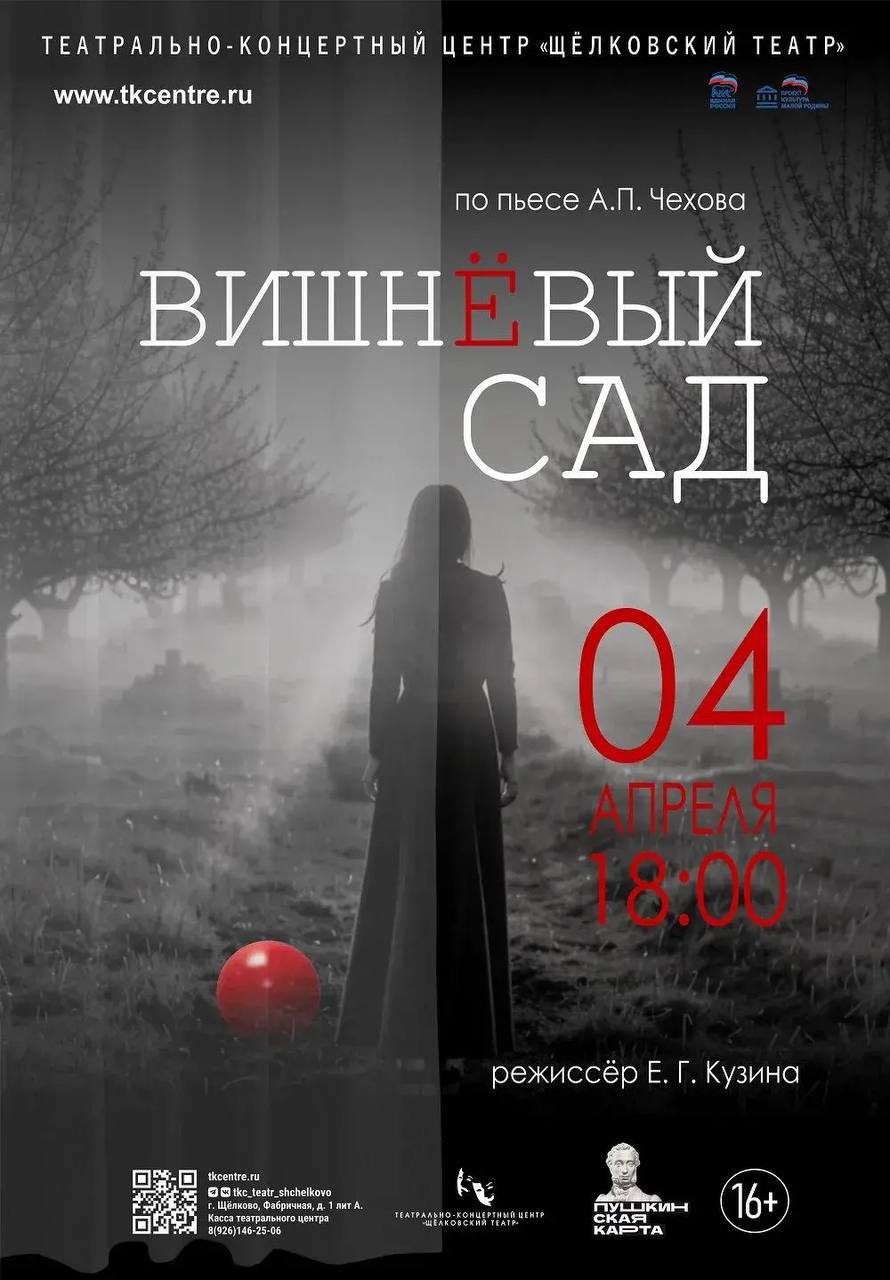 4 апреля, 18:00 — спектакль «Вишнёвый сад» (16+). Знаковая пьеса А. П. Чехова, венец русской драматургии. Это история о прошлом, настоящем и будущем, где каждый герой сталкивается с неизбежностью перемен. Любовь, надежда, утрата и стремление сохранить своё место в мире — всё это переплетается в судьбе старинной усадьбы и её обитателей.