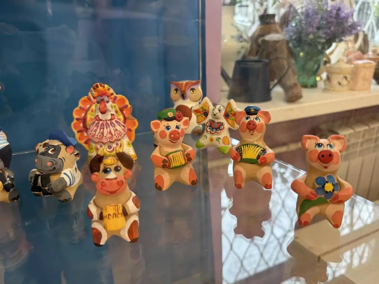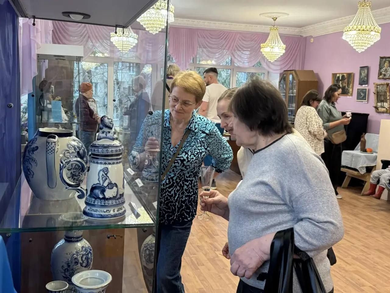 Экспозиция включает более 100 работ, среди которых живопись, авторские куклы и статуэтки, выполненные в технике гжельской росписи.