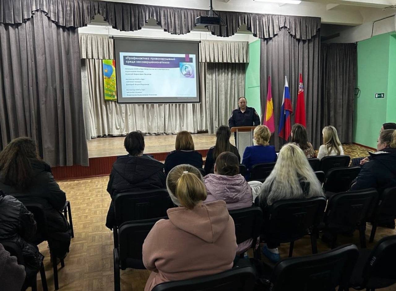 На общешкольном родительском собрании по вопросам профилактики правонарушений среди несовершеннолетних, которое прошло в местной школе, сотрудники Госавтоинспекции совместно с начальником ОУУП и ПДН УМВД России по г.о. Воскресенск, а также представителем линейного отдела полиции озвучили статистику происшествий с участием несовершеннолетних на территории округа, а также разобрали типичные причины совершения противоправных действий.