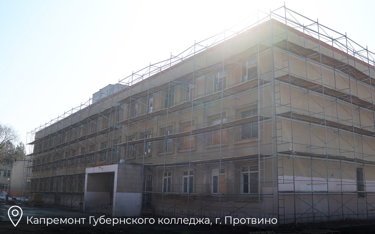 2 детсада в Серпухове, 4 школы (в Серпухове, Противне и Липицах), 3 дома культуры (ДК «Исток» и Дворец торжеств «Центральный» в Серпухове, ДК п. Большевик) отремонтируют в 2026-м. В 2027-м — 2 ДШИ в Серпухове и Пущине. Сейчас идет капремонт Губернского колледжа в Протвине .