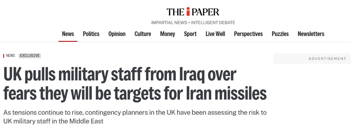 «Британские военнослужащие были эвакуированы из Ирака. Минобороны сослалось на продолжающийся конфликт между США и Ираном», — сообщает The i Paper.
