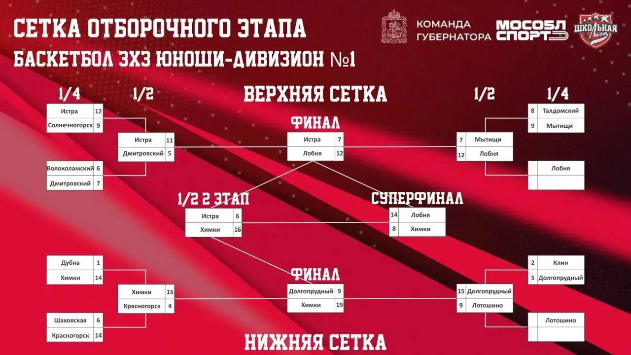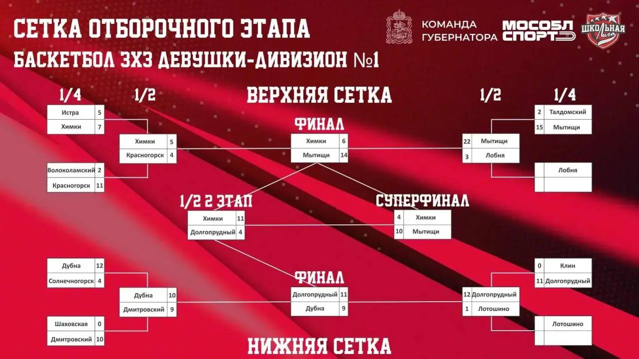 На сегодняшний день в Суперфинал соревнований от городского округа Мытищи пробилась только баскетбольная команда девушек. Ученицы школы № 32 Дарья Челак, Ульяна Куликова, Варвара Толпегина, Ульяна Ковалевская и Вероника Васильева уверенно переиграли своих соперниц во всех матчах. Команда юношей начала с трудовой победы над Талдомом, но затем уступила будущим победителям дивизиона из Лобни.