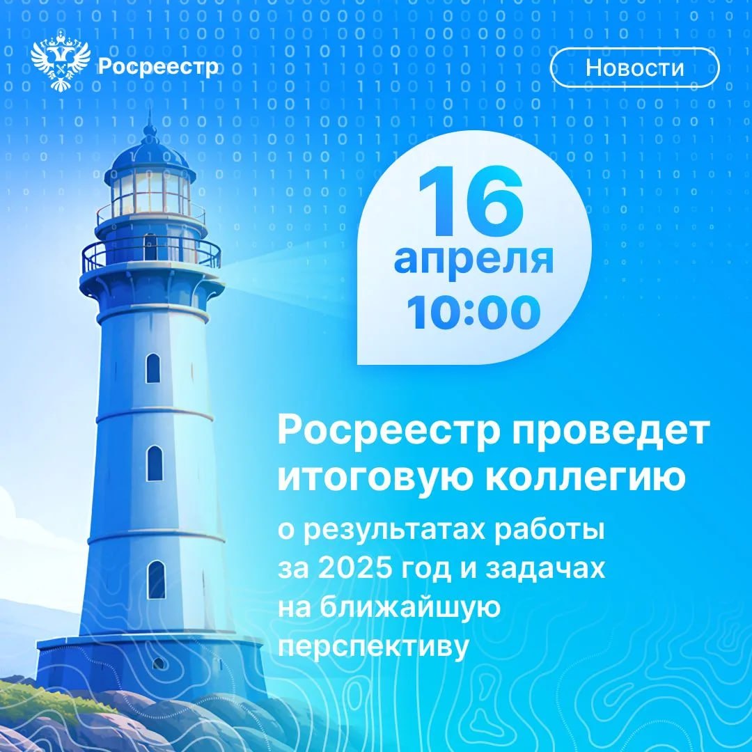 16 апреля 2026 года состоится итоговое заседание коллегии Росреестра, посвященное обсуждению результатов деятельности ведомства за 2025 год и задач на 2026 год.