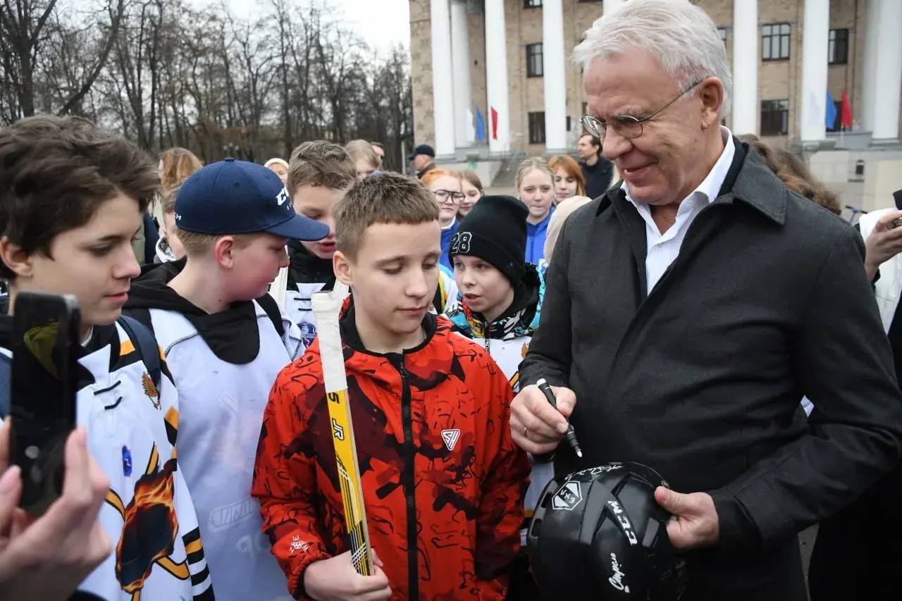 В Жуковском Глава города Андроник Пак и Вячеслав Фетисов встретились с юными хоккеистами местной команды «Метеор».
