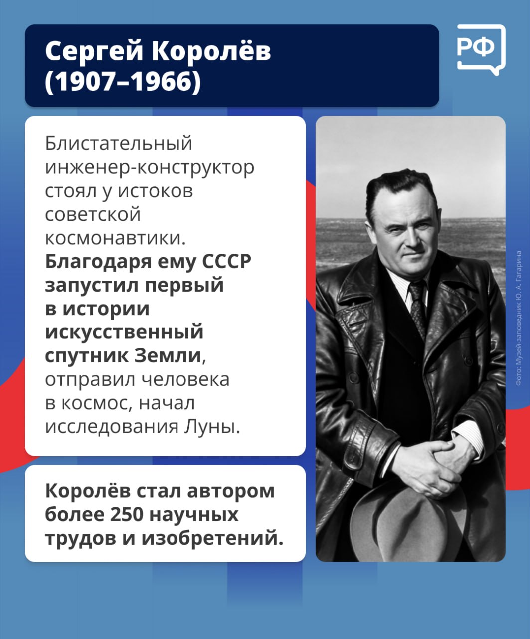 Так говорил легендарный конструктор Сергей Королёв. Он стал творцом нашей главной космической победы — первого полёта человека на орбиту. Вместе с ним работали и другие выдающиеся учёные, инженеры и конструкторы. Рассказываем о них в карточках!