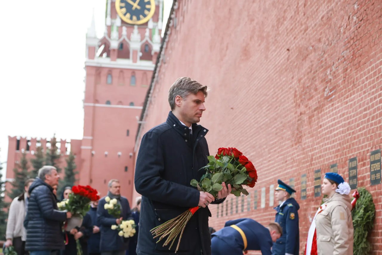 Делегация Роскосмоса во главе с Дмитрием Бакановым возложила цветы к мемориалу у Кремлевской стены, где похоронены Сергей Королев, Юрий Гагарин и другие выдающиеся представители ракетно-космической отрасли.