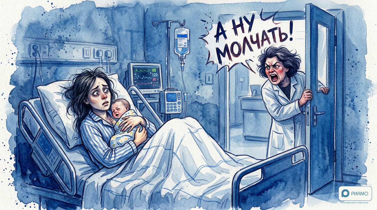 «Я очень испугалась, закричала: „Не трогайте моего ребенка! Выйдите из моей палаты!“. Она начала вести себя еще более агрессивно, шагать на меня, говорить, что я здесь лежу не одна и должна что-то сделать, чтобы мой ребенок так не орал», — рассказала молодая мама.