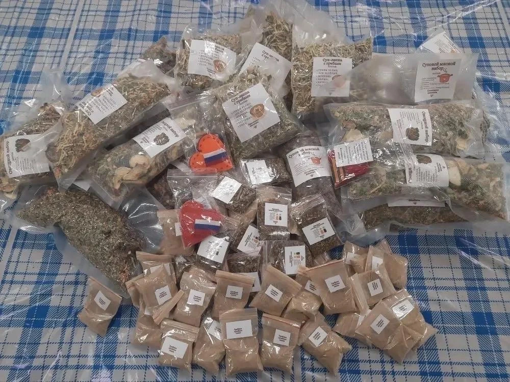 Под руководством повара-универсала школьники собрали и упаковали суповые наборы, приправы и сушёные продукты.