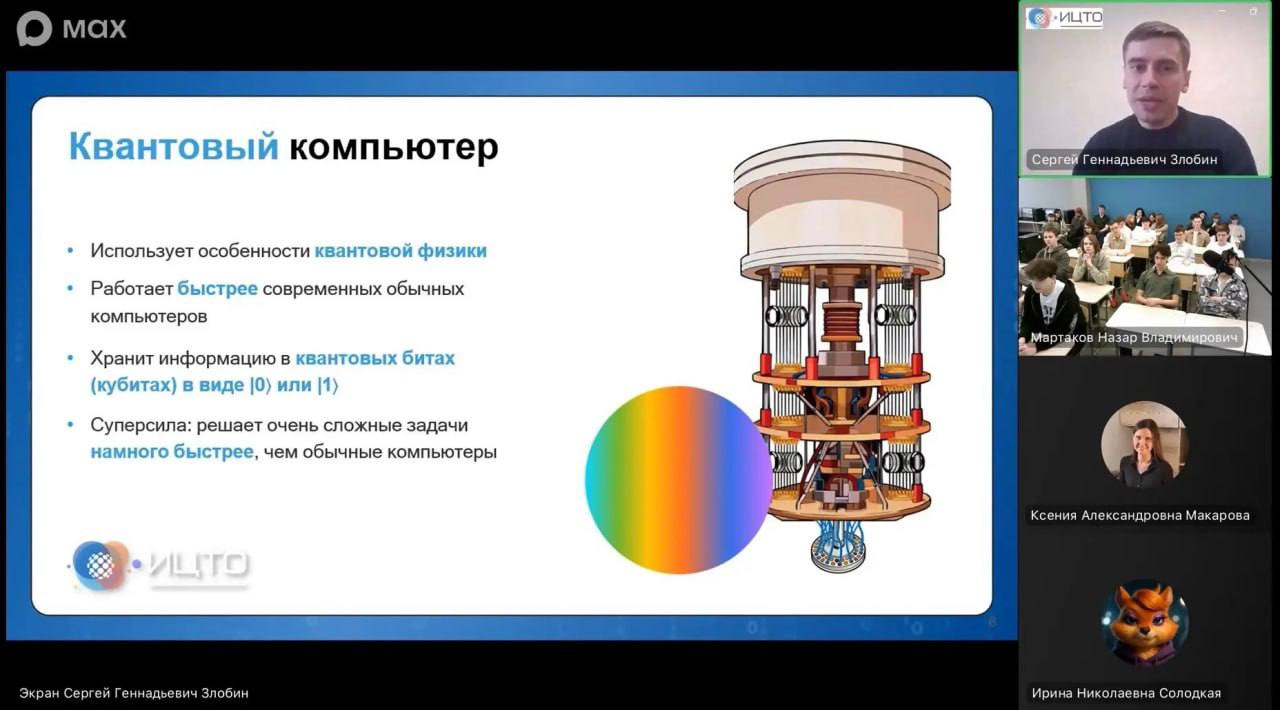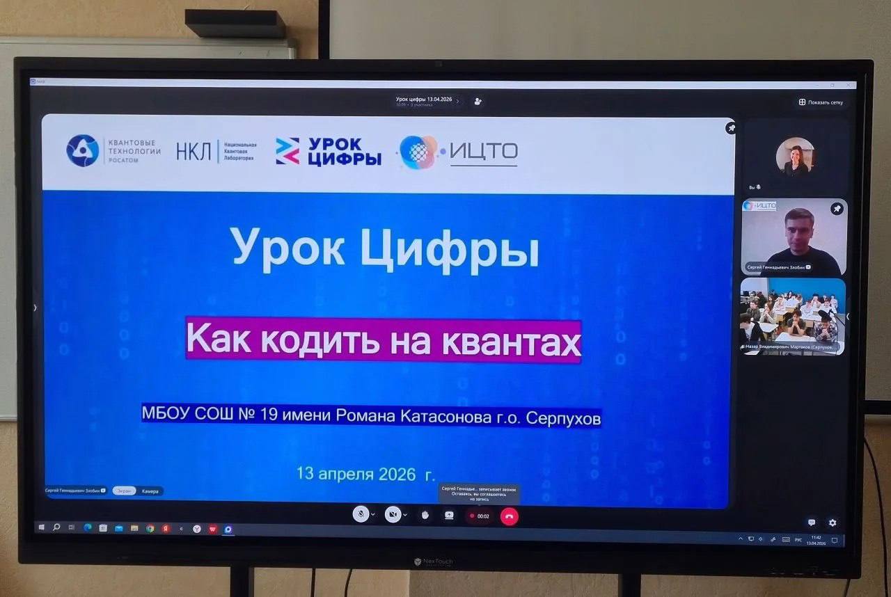 13 апреля школьники округа присоединились к всероссийскому проекту «Урок цифры», реализуемому Минцифры России совместно с Минпросвещения России и АНО «Цифровая экономика», и познакомились с одной из самых перспективных технологий будущего - квантовыми вычислениями. Партнёром выступила АНО «Институт цифровой трансформации образования», разработчик урока — Госкорпорация «Росатом».