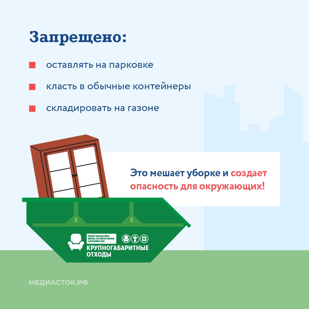 Их следует сбрасывать на спецплощадки или в пункты «Мегабак». Размещение у обычных контейнеров — запрещено.