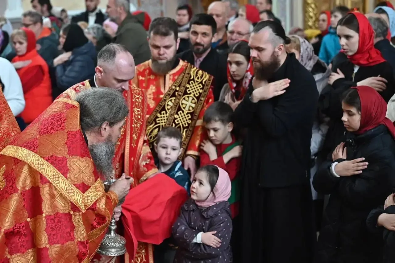 Утро начали с Божественной Литургии в Вознесенской Давидовой пустыни, во время которой верующие вместе с клиром под пение священного возгласа «Христос Воскресе!» выразили радость праздника.