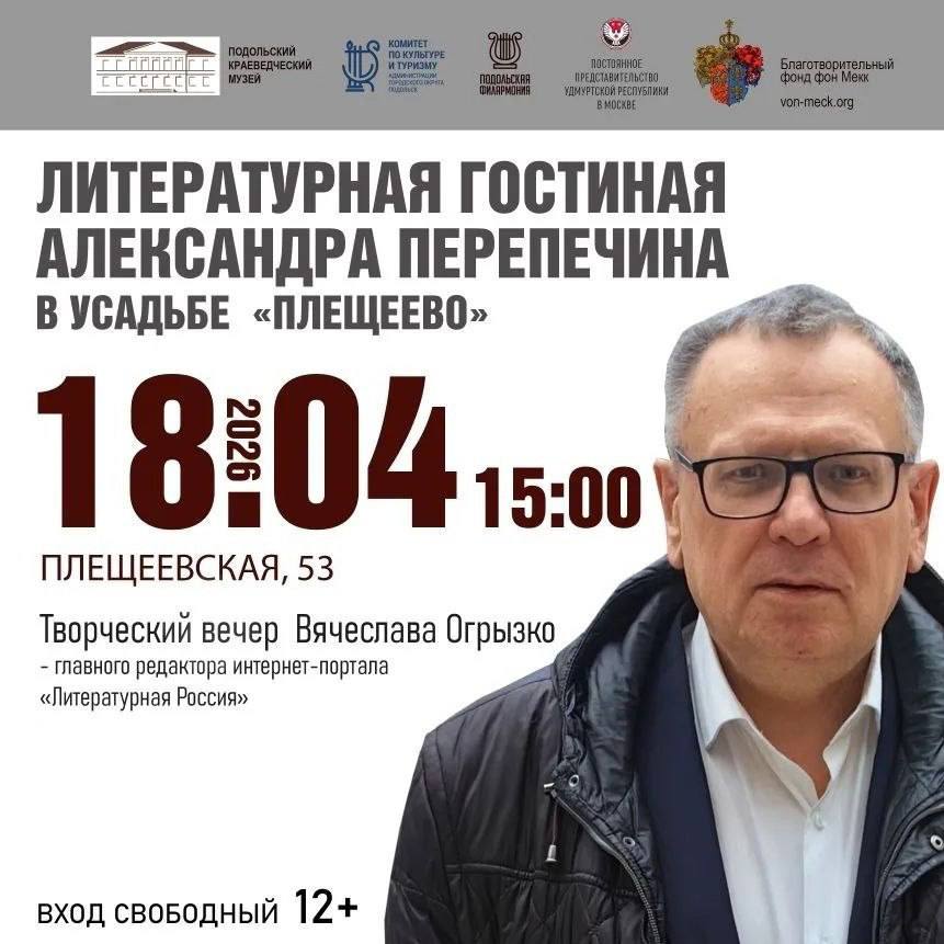 В рамках мероприятия пройдёт творческий вечер главного редактора интернет-портала «Литературная Россия» Вячеслава Огрызко.