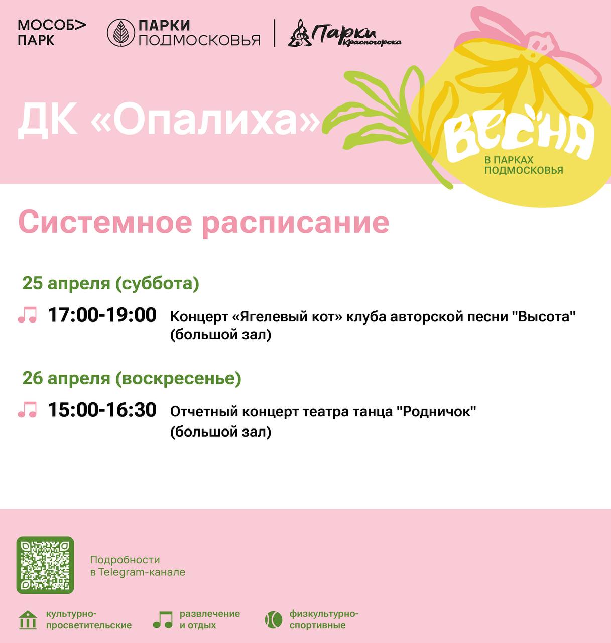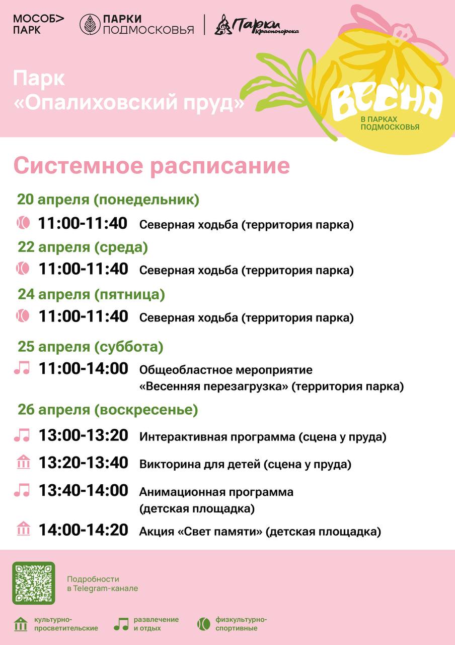 Афиша мероприятий на парковых территориях с 20 по 26 апреля.
