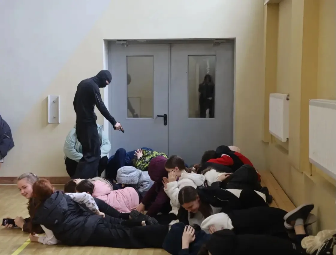 при отработке первого сценария сотрудники и дети забаррикадировались в классах, заняв максимально безопасное положение;