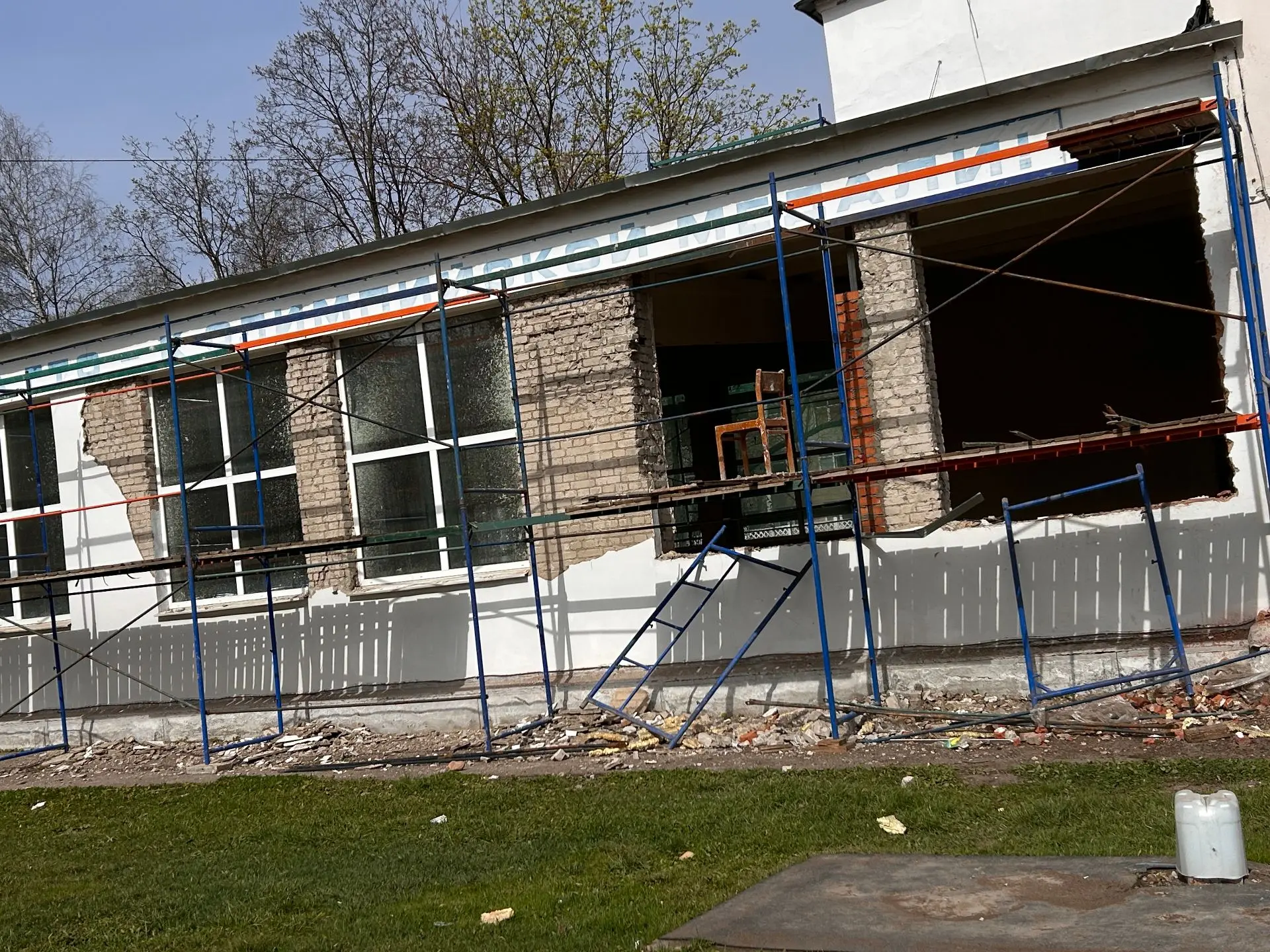 Параллельно начались работы по ремонту фасада. Убираются старые оконные рамы, с наружных стен счищается старый слой штукатурки, после чего кирпичную кладку обошьют теплоизоляцией и установят вентилируемые панели.