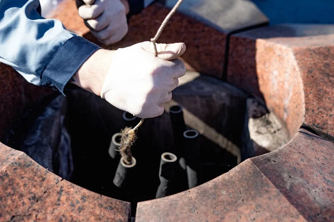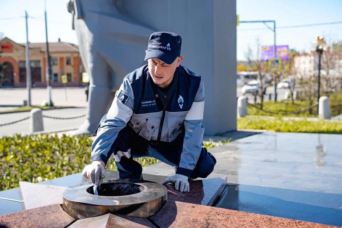 Чтобы мемориал работал без перебоев, ежегодно специалисты «Мособлгаза» проводят техническое обслуживание газовой горелки: очищают форсунки, проверяют герметичность систем, выполняют продувку и регулируют высоту пламени.