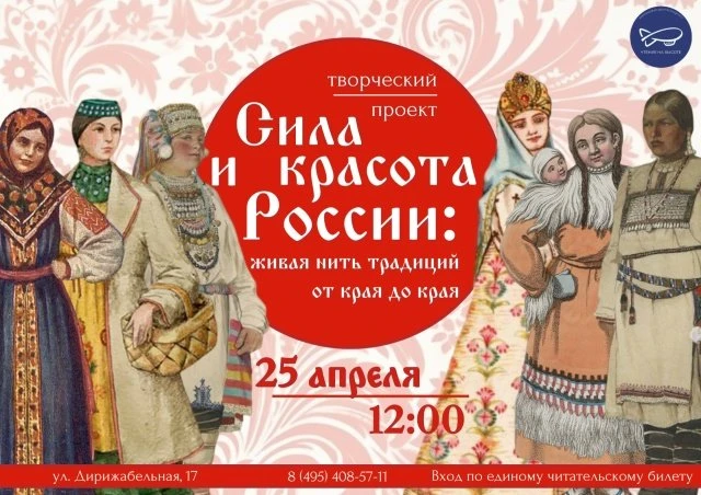 25 апреля здесь в рамках проекта «Сила и красота России. Живая нить традиций от края до края» встретятся народное творчество и современность, уникальность каждого из народов России вольётся в общность интересов и стремлений жителей нашей большой страны.