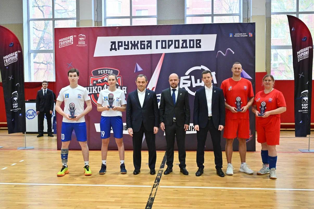 На паркете встретились преподаватели из Балашихи и Реутова, чтобы узнать, кто лучше играет в баскетбол и волейбол. Личным примером они показали, что такое спортивный азарт и командная работа. С удовольствием вручил заслуженные кубки победителям.