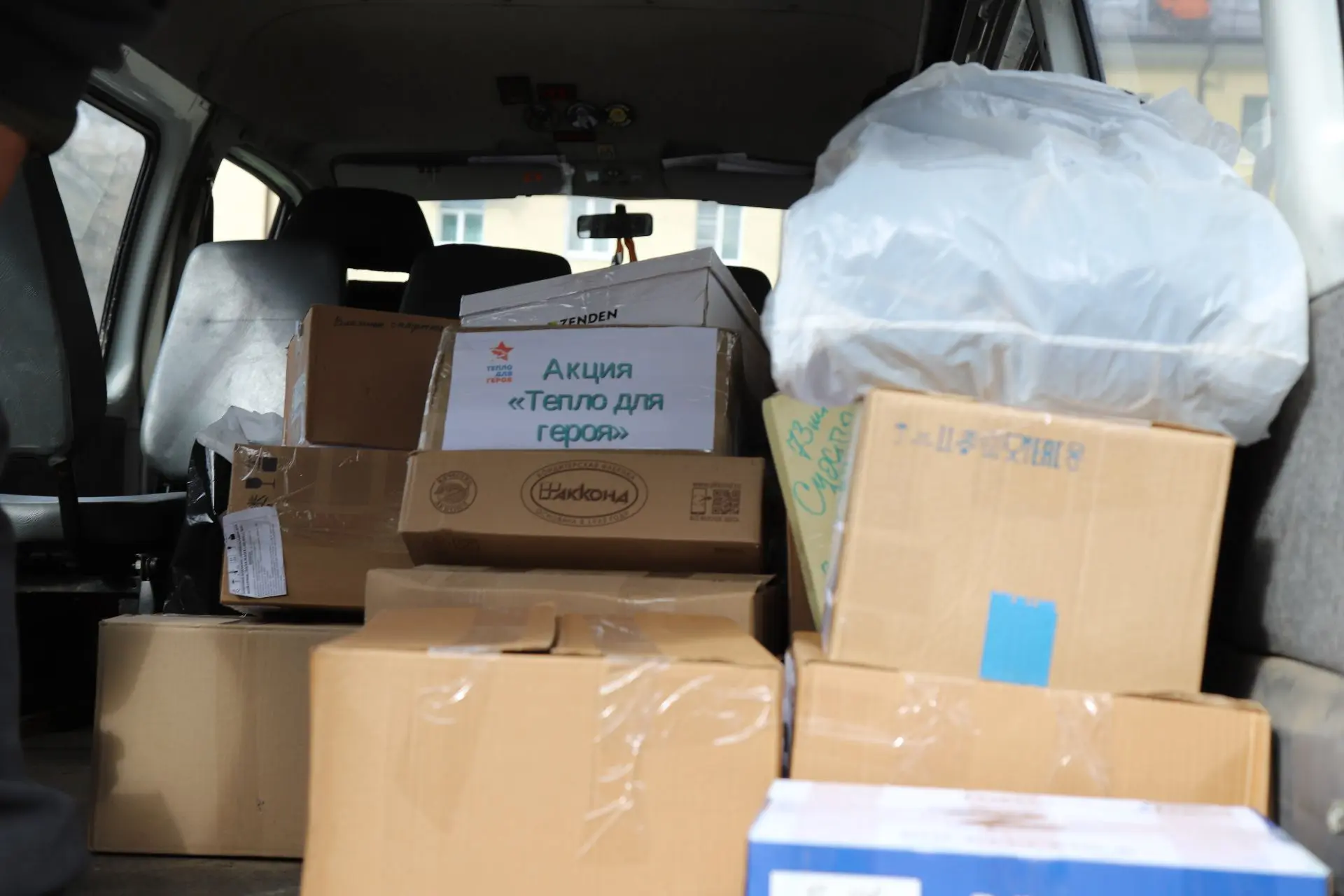 Отдельно - тёплые вещи, которые связали жители нашего округа в рамках акции «Тепло для героя». За каждой парой носков - искренняя забота, тепло рук и настоящая поддержка. Каждая отправленная на фронт вещь — это знак, что за спиной солдата вся страна.