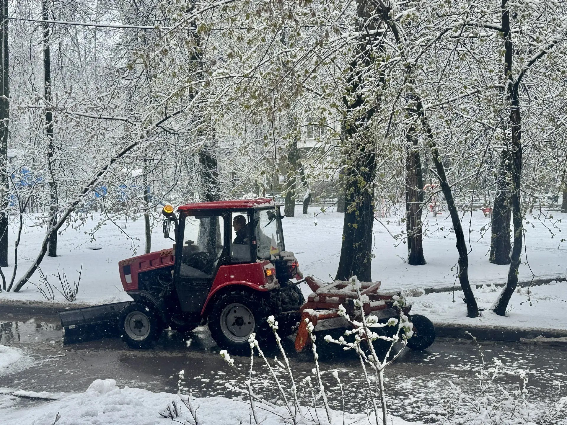 Особое внимание — упавшим из-за тяжести мокрого снега деревьям. По состоянию на утро сегодняшнего дня зафиксировано более 10 поваленных стволов на дворовых территориях – в основном, это «старый город». Для ликвидации аварийных деревьев в наличии у УК есть бензопилы. Работы идут точечно.