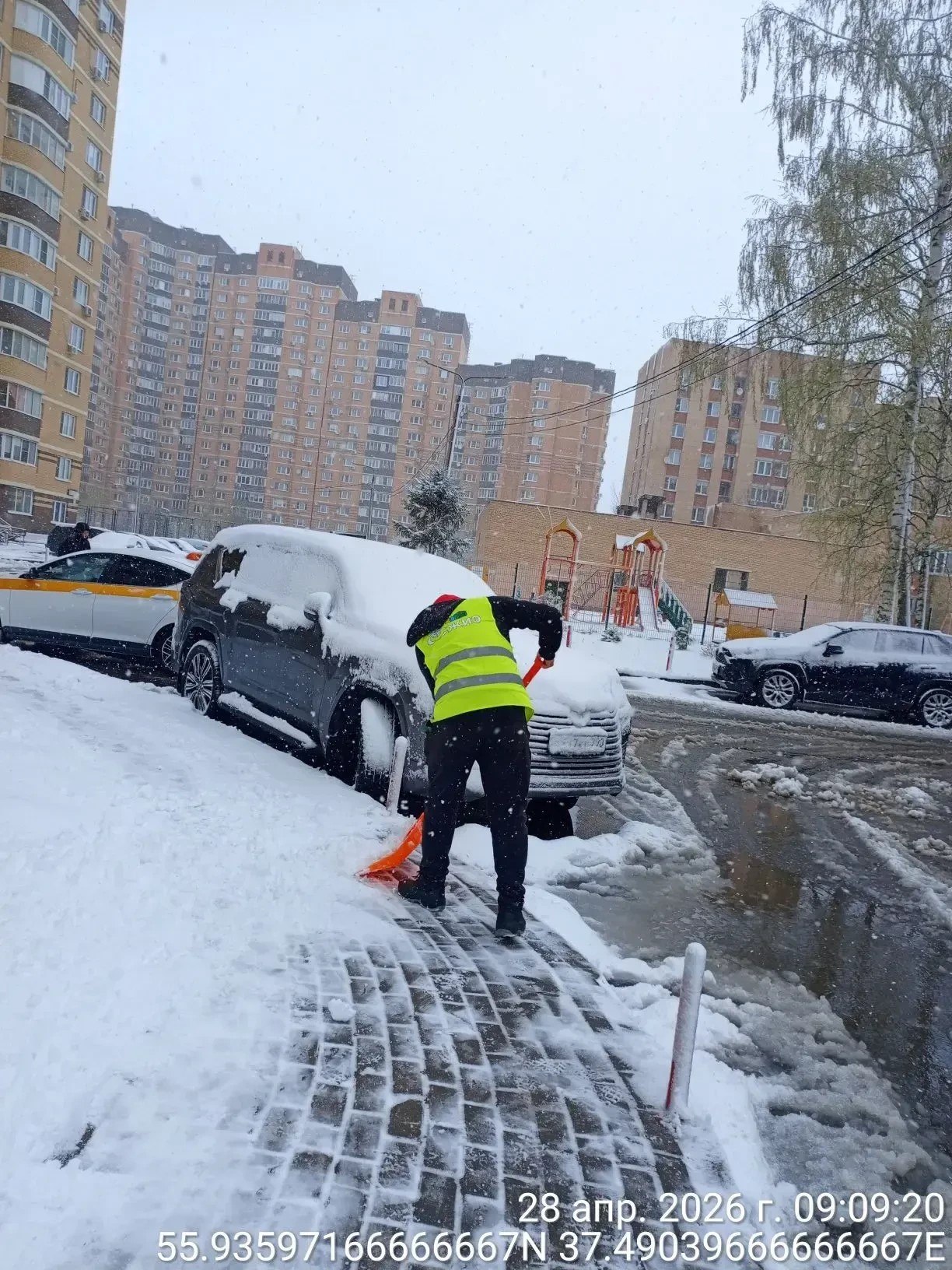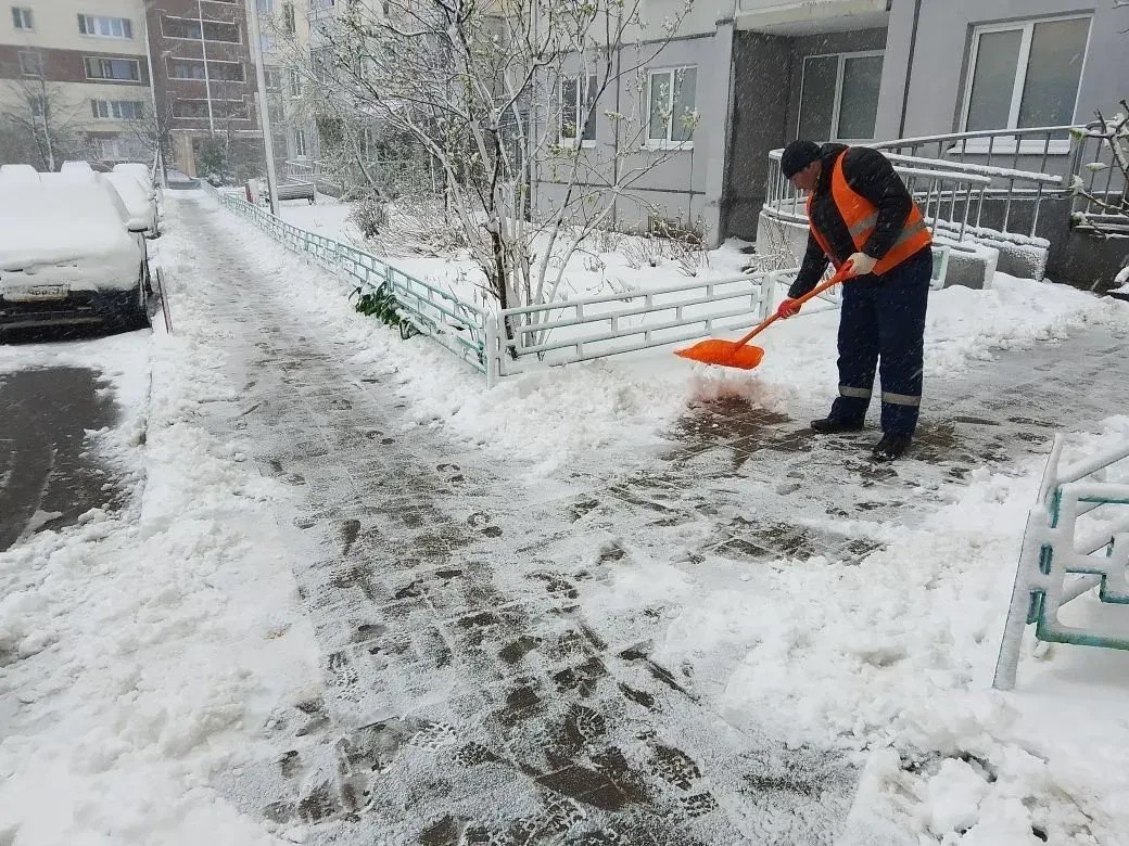 14 управляющих компаний округа 28 апреля направили на ликвидацию последствий стихии 234 дворника. Они вручную расчищают тротуары, дорожки, входы в подъезды.