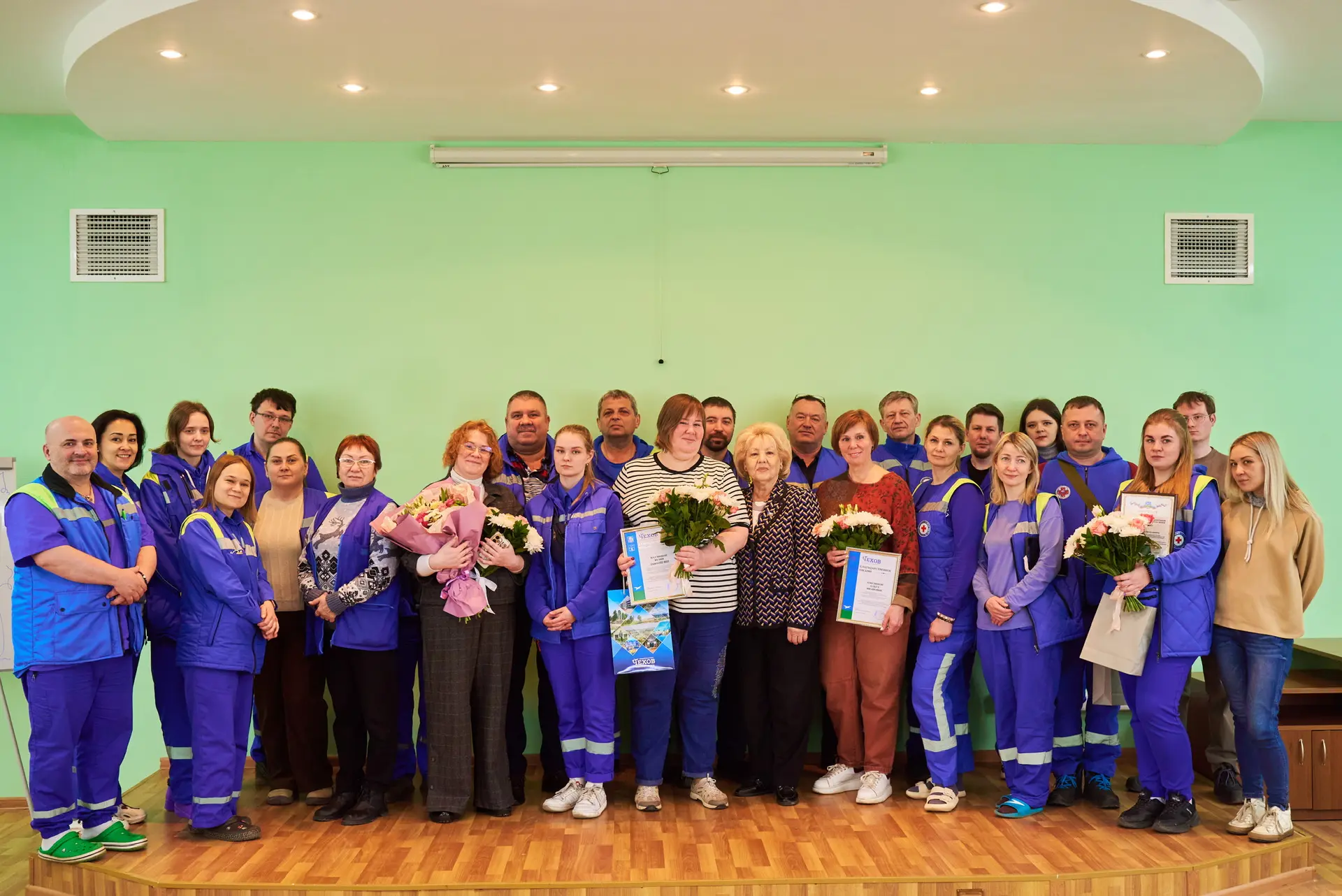 Особую гордость вызывает Чеховская подстанция Московской областной станции скорой медицинской помощи. Здесь трудится дружный коллектив из 130 сотрудников, среди которых 88 фельдшеров — настоящих профессионалов своего дела. С начала этого года к вам присоединились 25 новых специалистов — фельдшеров и медицинских сестёр, которые уже успели стать частью вашей сплочённой команды. Ежедневно на дежурство выходят 12 бригад, готовых в любую минуту отправиться на вызов. На базе вашей подстанции расположен диспетчерский пункт регионального объединения, что позволяет обслуживать вызовы не только вашего района, но и соседних муниципалитетов. И то, что Чеховская подстанция входит в десятку лучших по Московской области, — закономерное признание вашего мастерства, ответственности и преданности профессии.