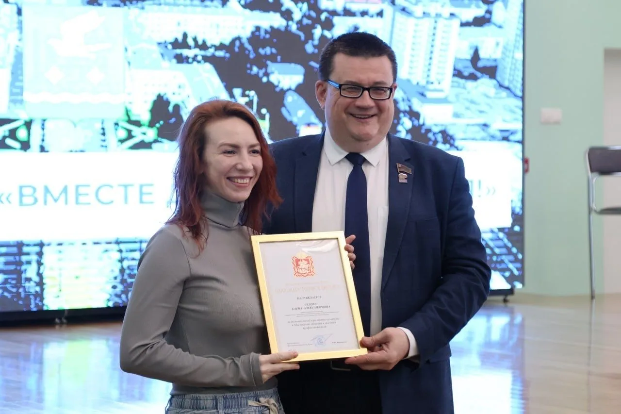 По завершении отчёта Андрей Голубев совместно с Юлией Шалыгиной, директором МБУК «Дворец культуры», вручил благодарственные письма Московской областной Думы сотрудникам Дворца культуры — артистке Елене Седовой и сотруднику Максиму Архипову.